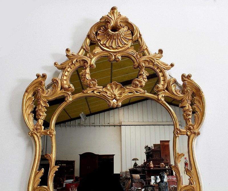 Importante Glace en Bois Doré, style Régence – Début XXe
