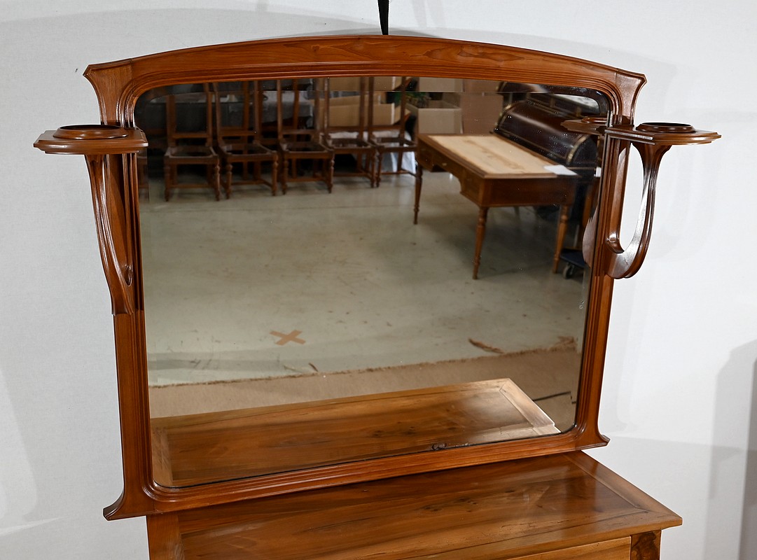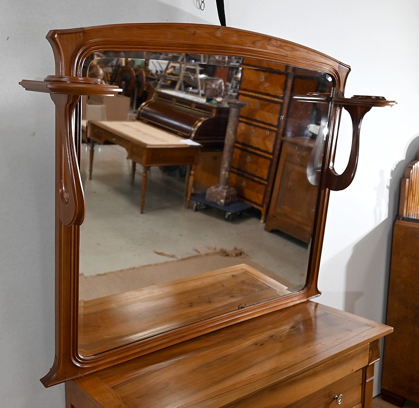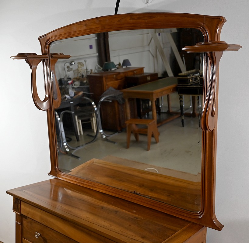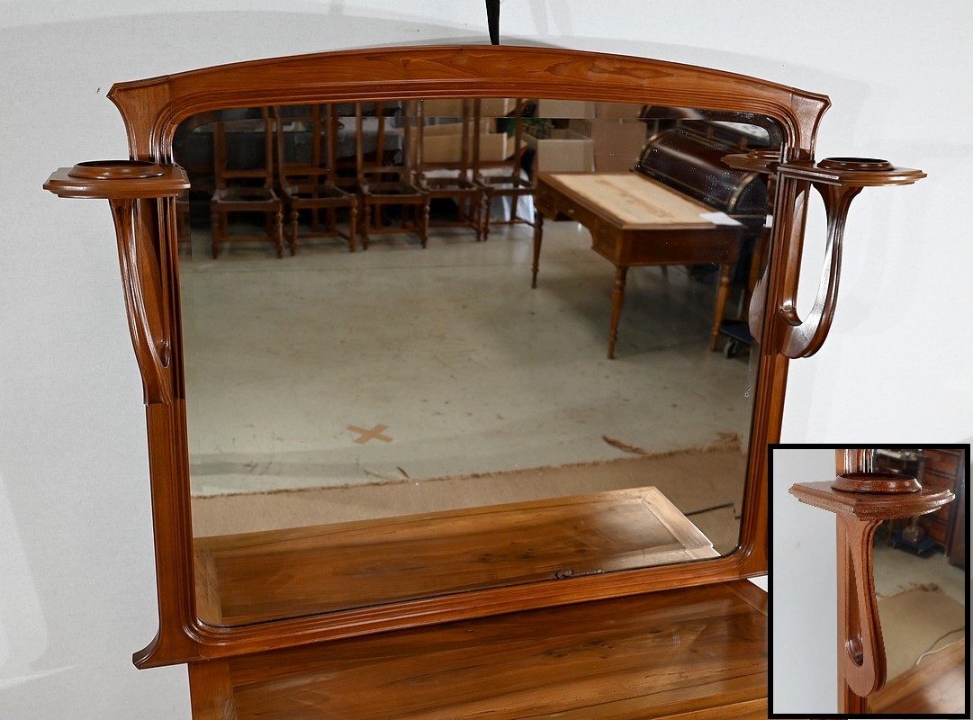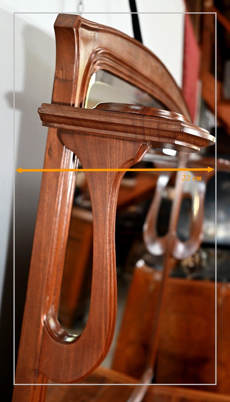 Ce miroir n’est pas sans rappeler les créations de Louis Majorelle, ébéniste français du mouvement Art Nouveau, amoureux des formes naturalistes et des lignes courbes.