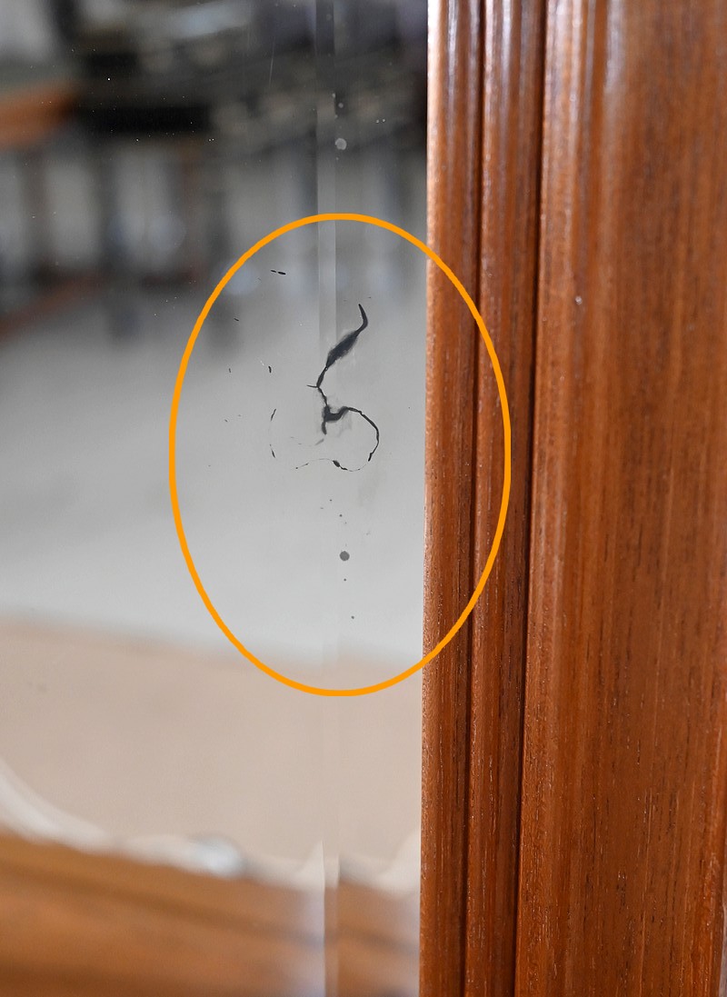 La glace, aux pourtours biseautés et au mercure, est d’origine. De ce fait, elle présente quelques traces d’ancienneté qui n’entravent en rien l’utilisation de ce miroir, mais attestent de son authenticité.
