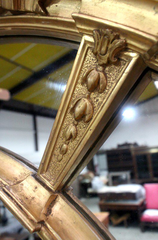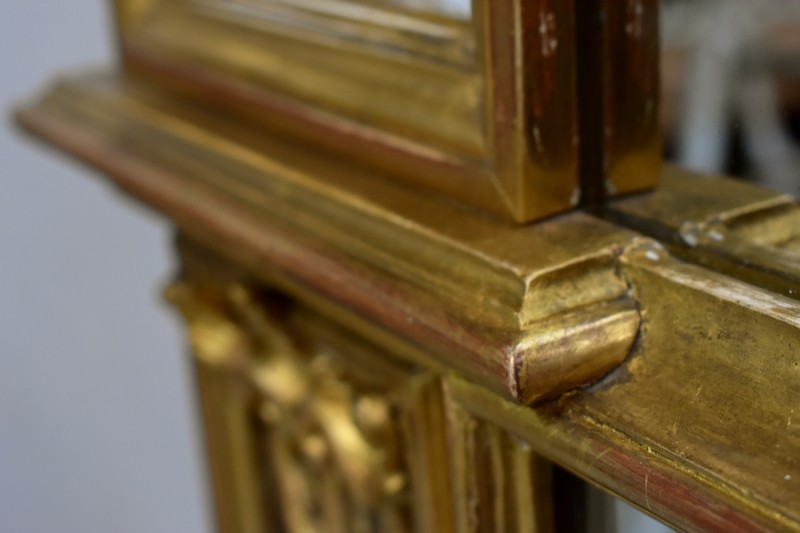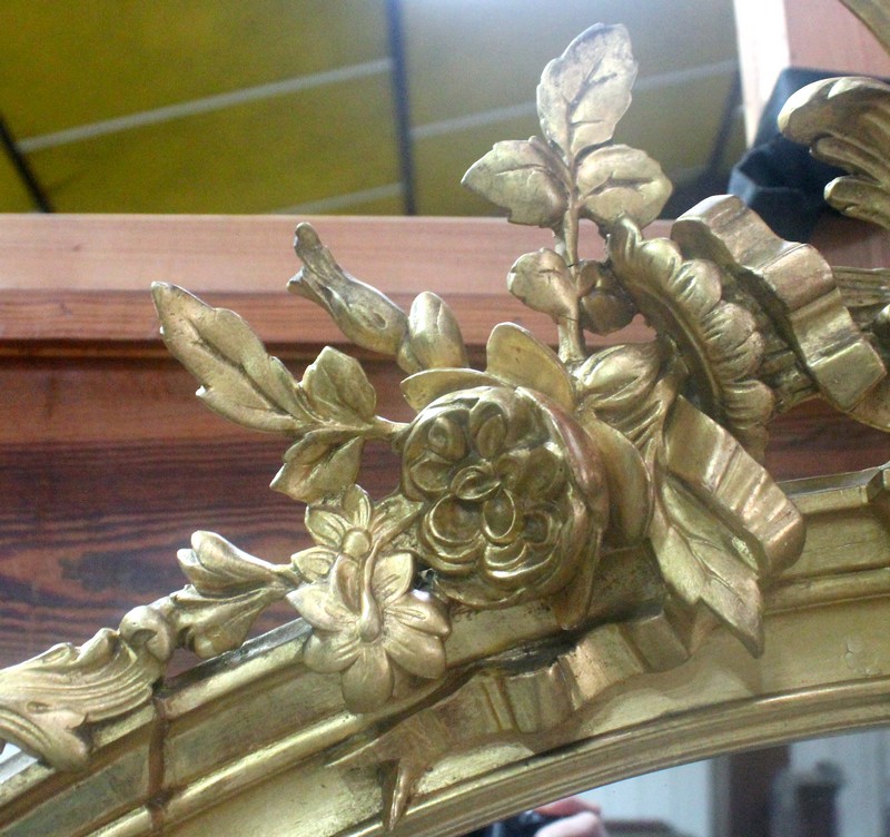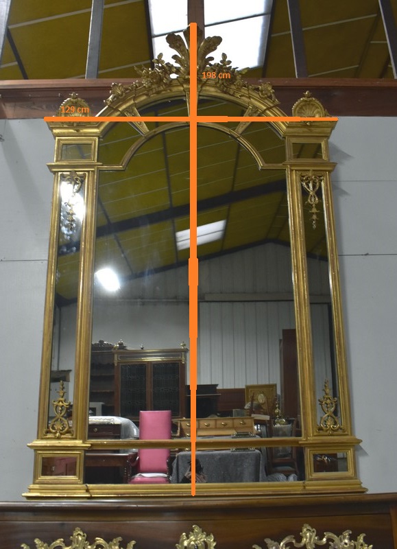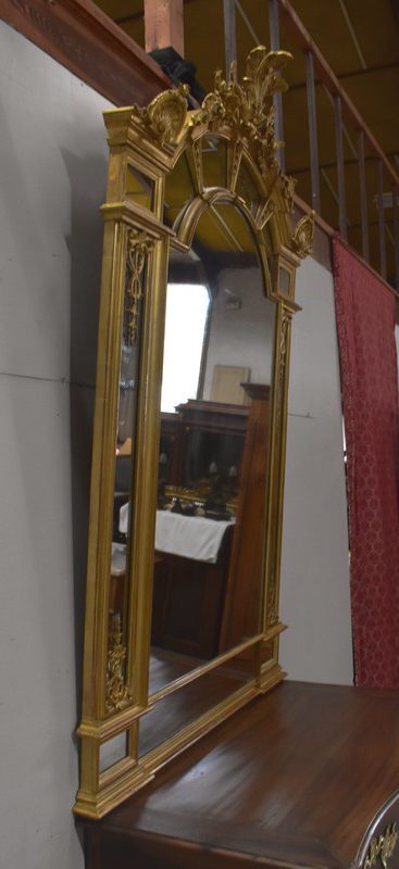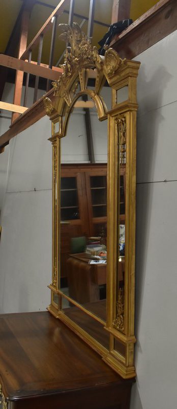 Magnifique Miroir à Parcloses avec entourages en Bois Doré à la feuille.