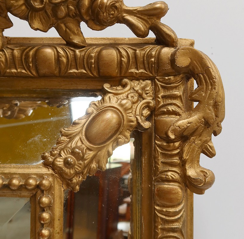 Les angles de ce Miroir sont garnis de feuilles d’acanthe.