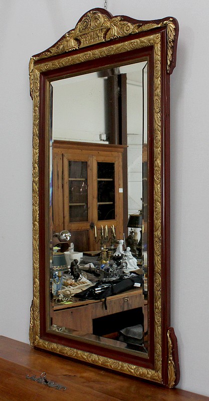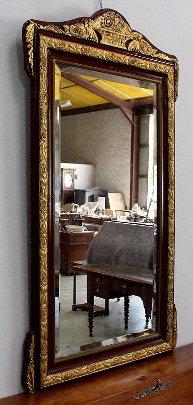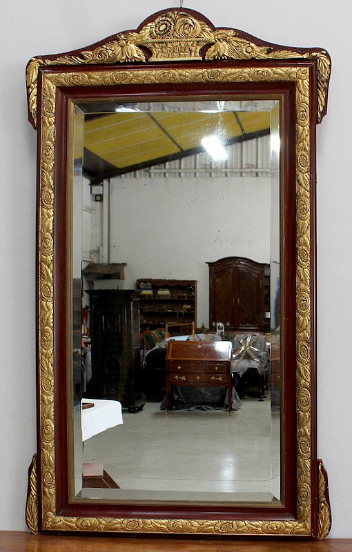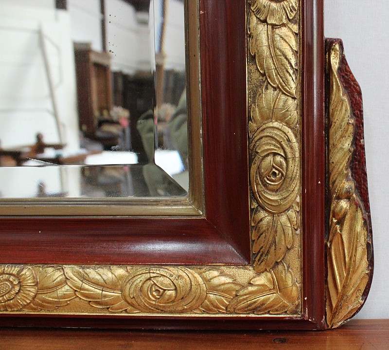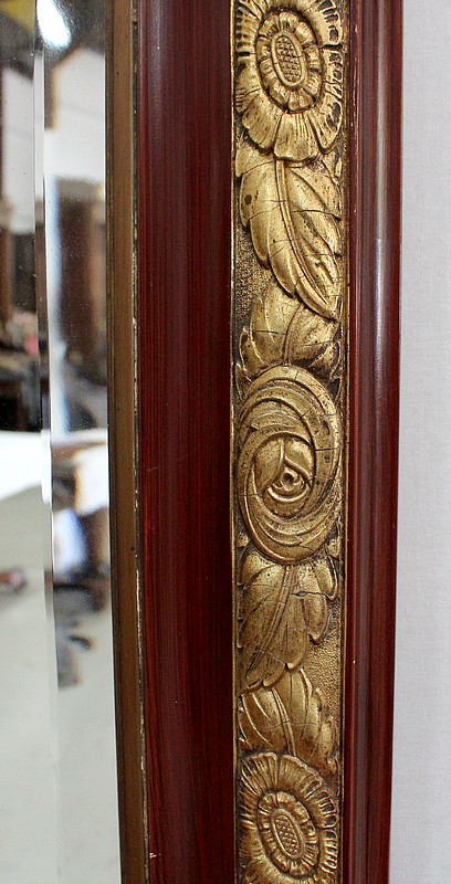 Miroir Art Nouveau présentant une Glace au Mercure Biseautée entourée d’un encadrement mouluré et bicolore.