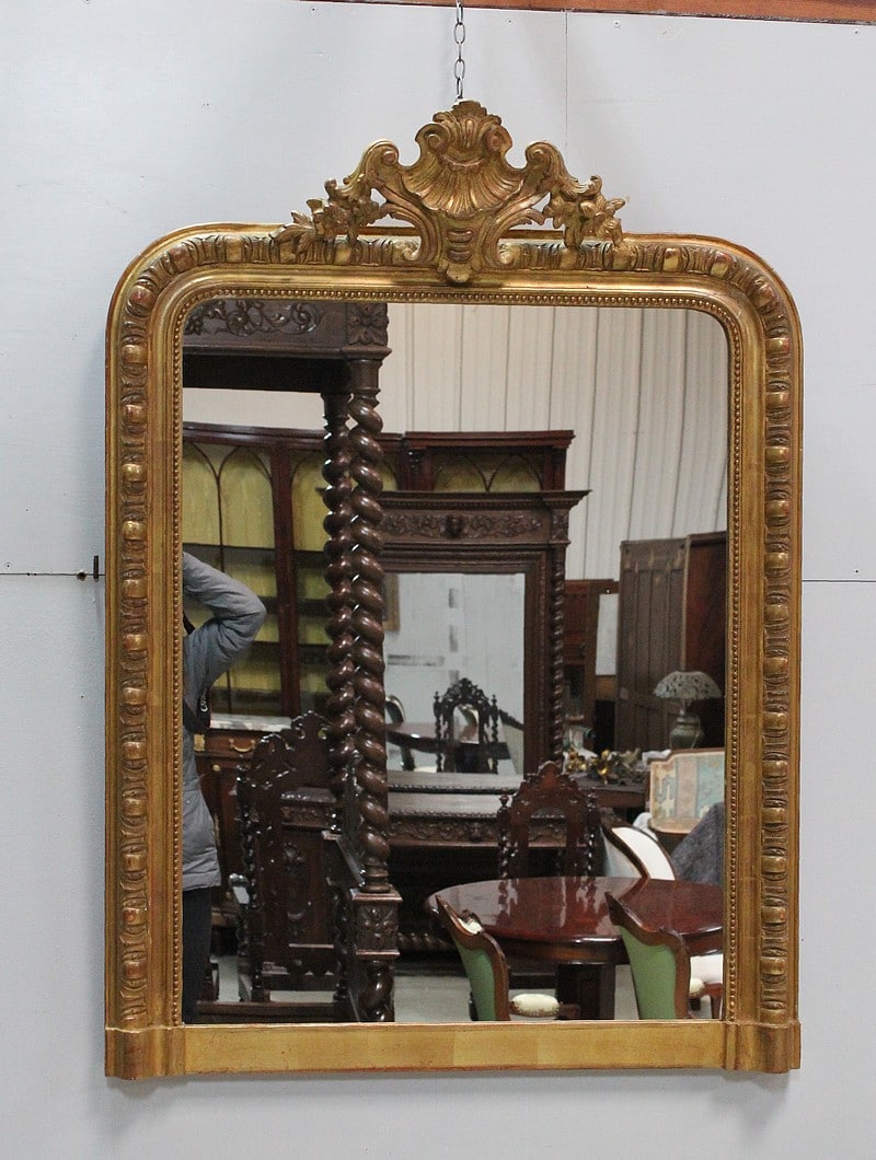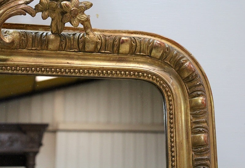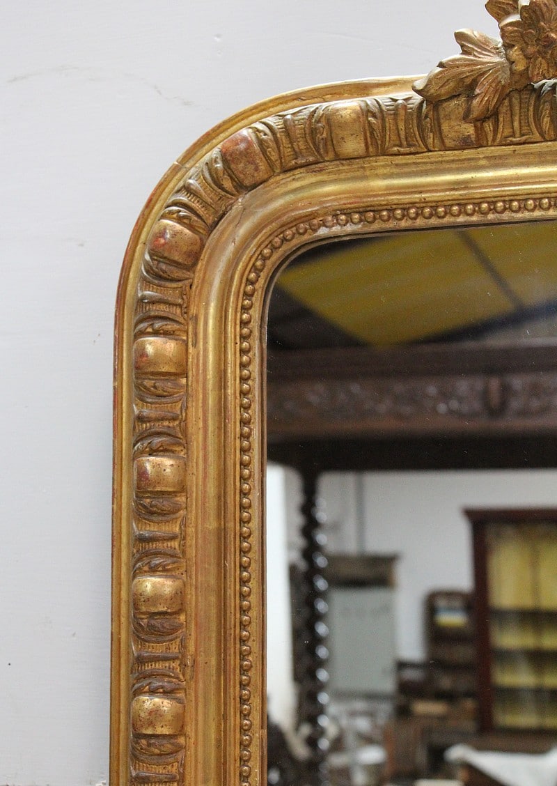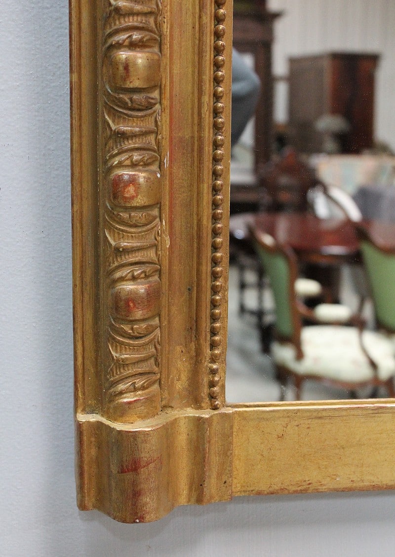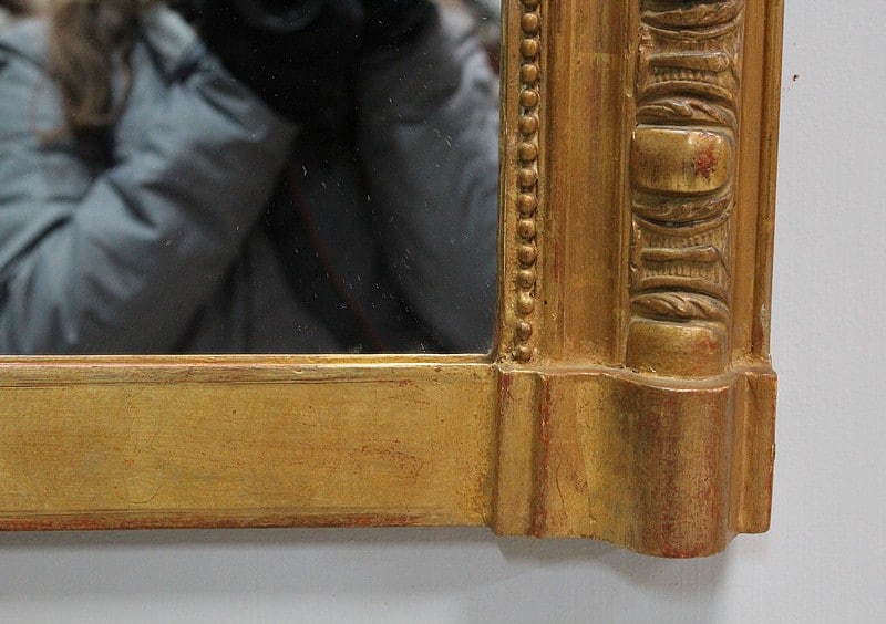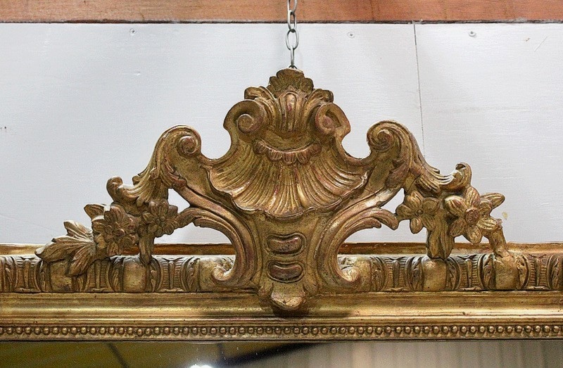 Miroir en bois et stuc dorés de style Napoléon III avec sa glace au mercure.