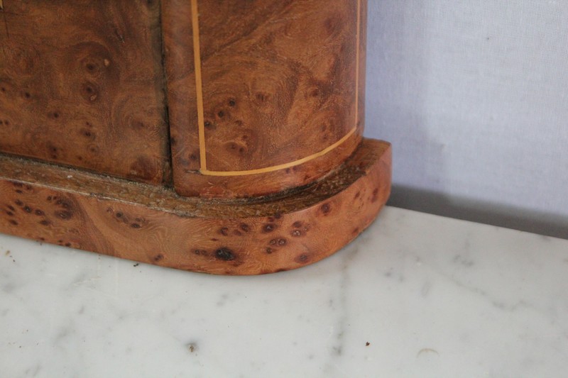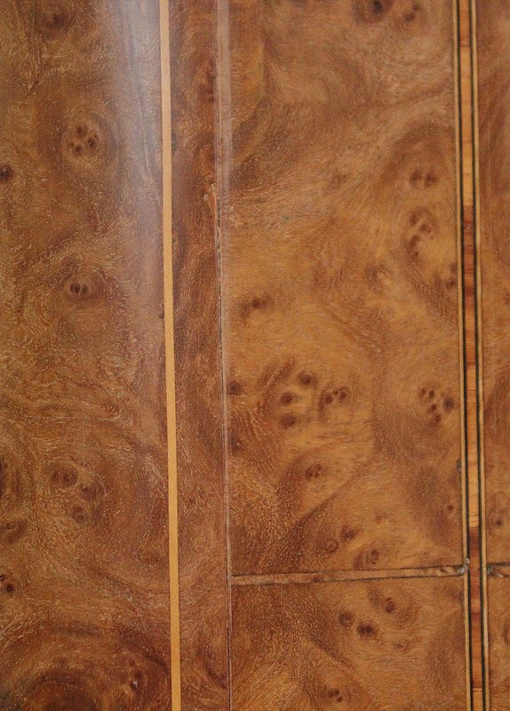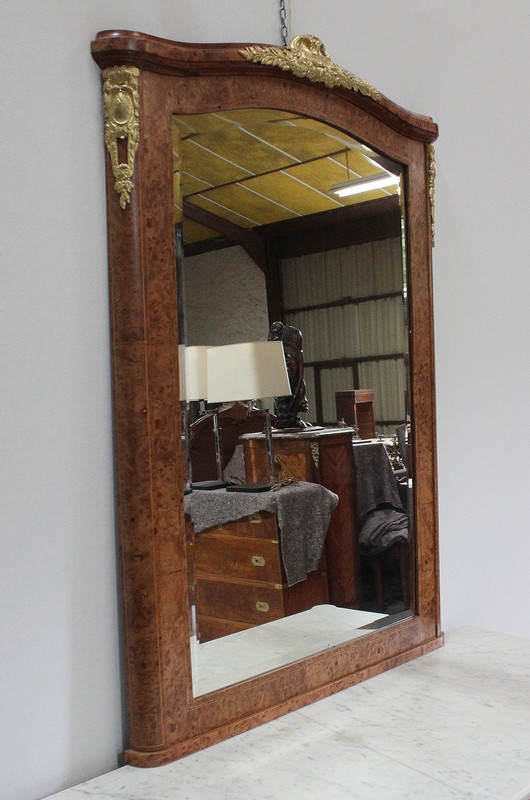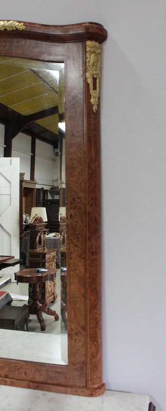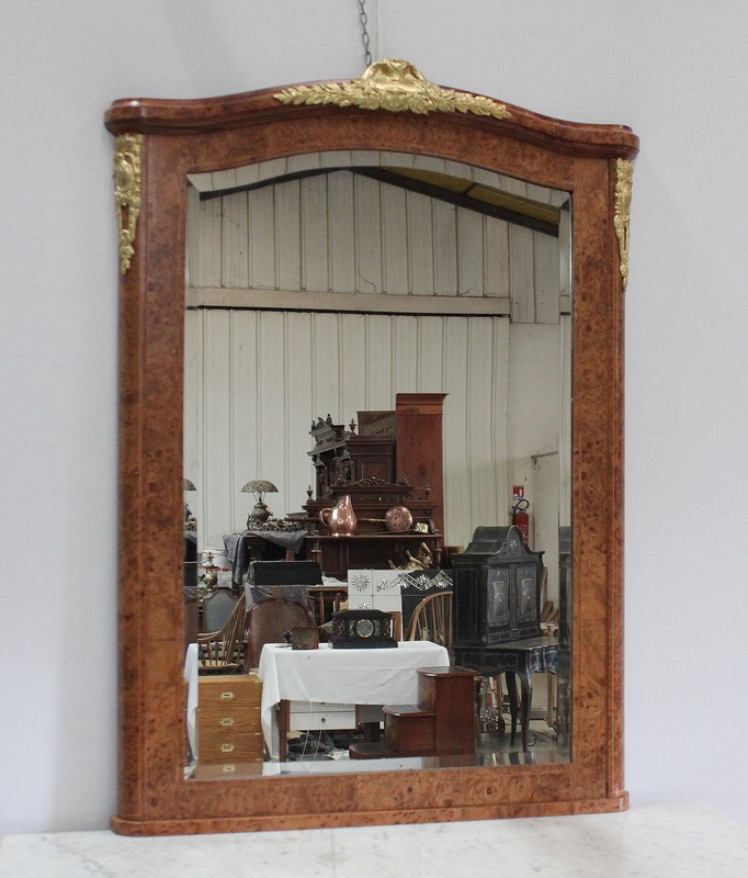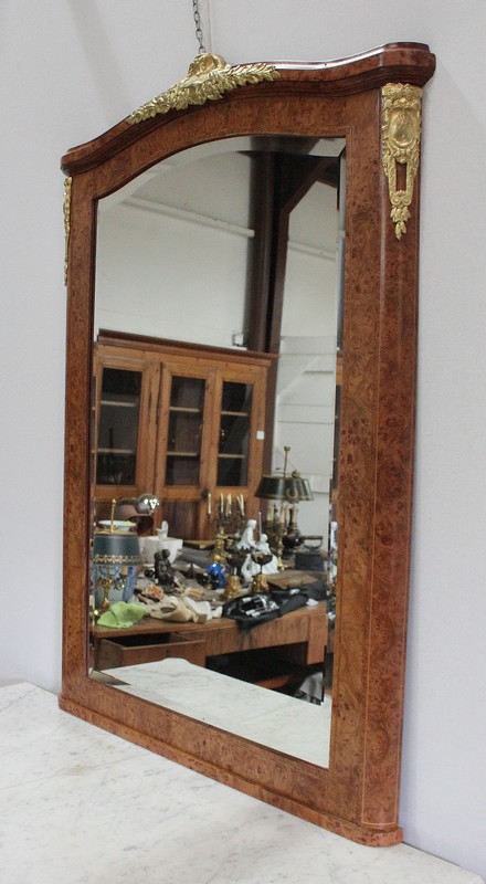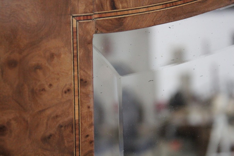 Élégant Miroir à glace légèrement Biseautée, et cadre composé de Loupe de Thuya et d’un Filet de Citronnier, de Bois de Rose et d’Ébène dans son Pourtour.