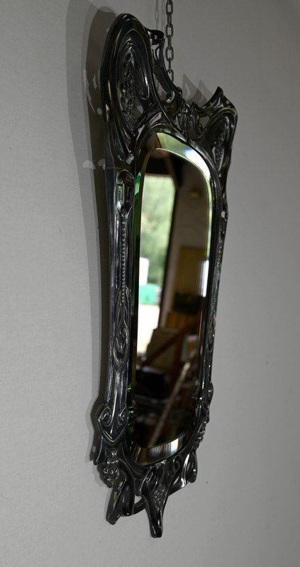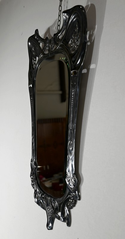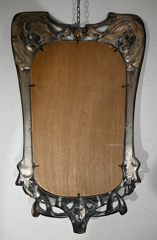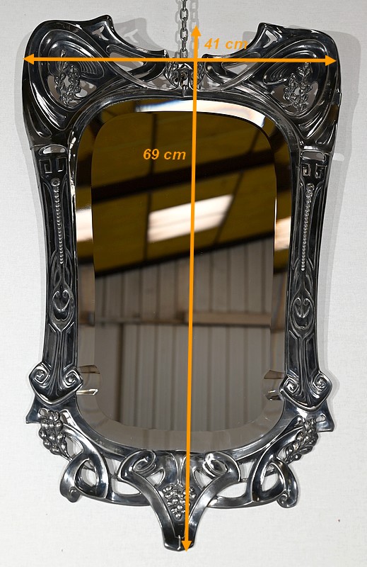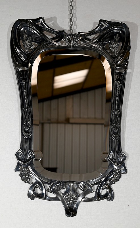Miroir en Métal Argenté, Art Nouveau – Fin XIXe / Début XXe