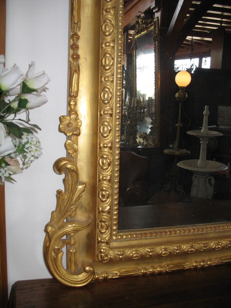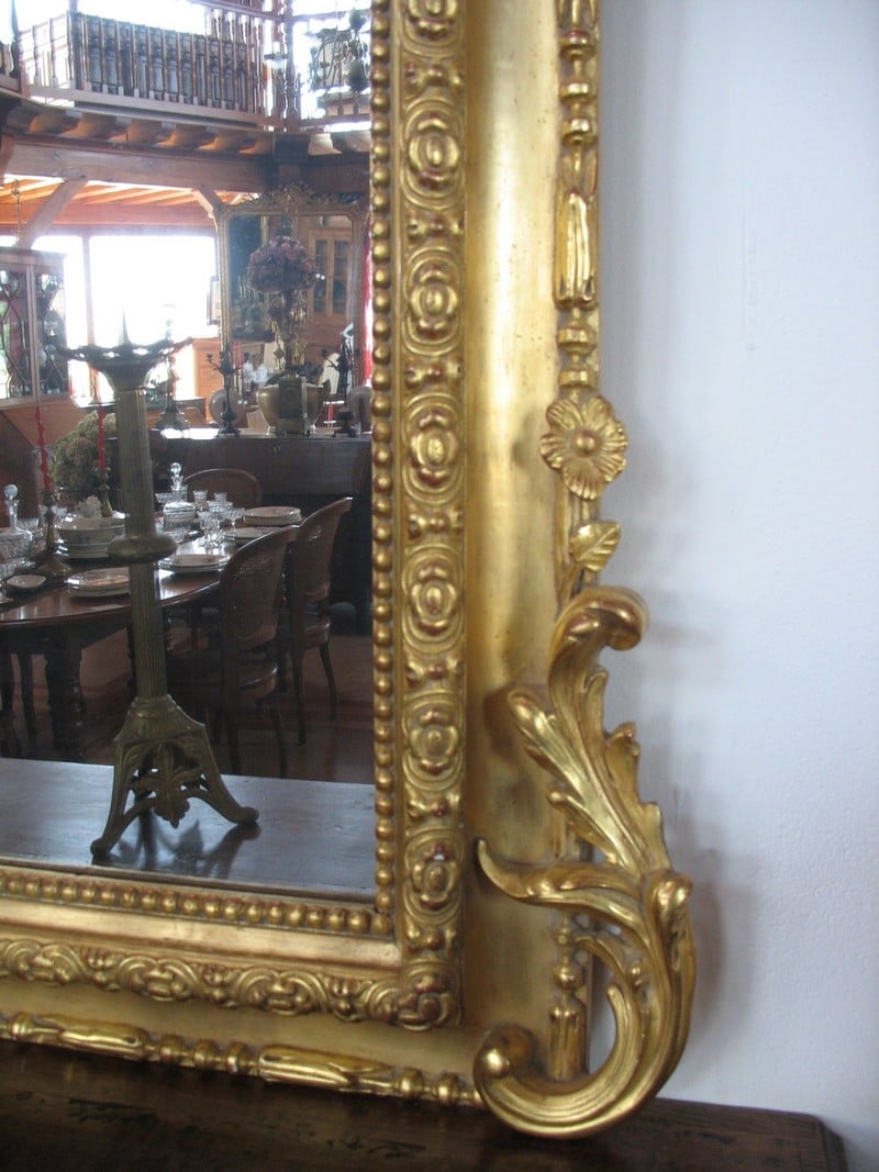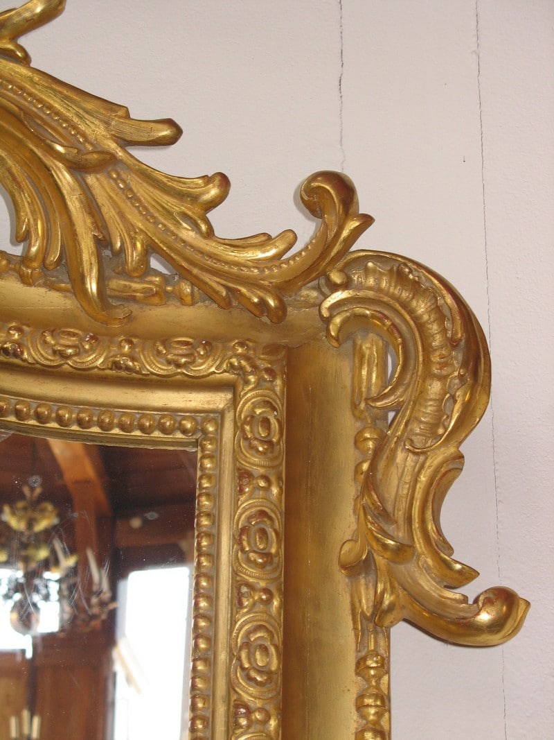 Majestueux Miroir Louis XIV doré à la feuille du XVIIIe siècle