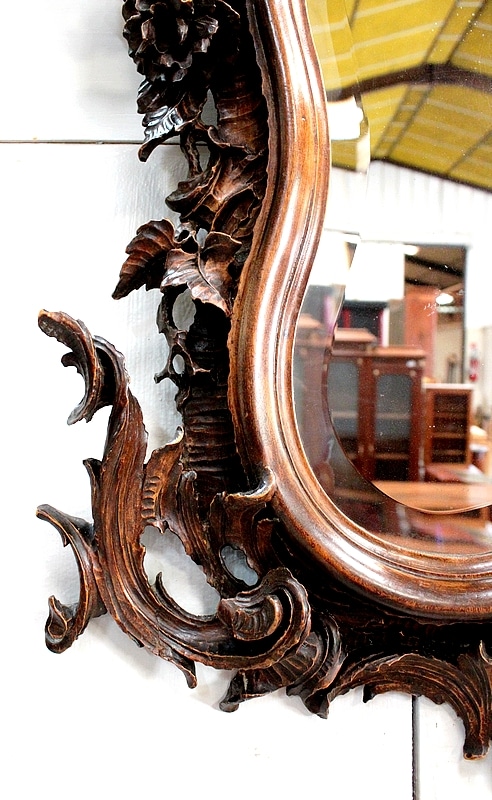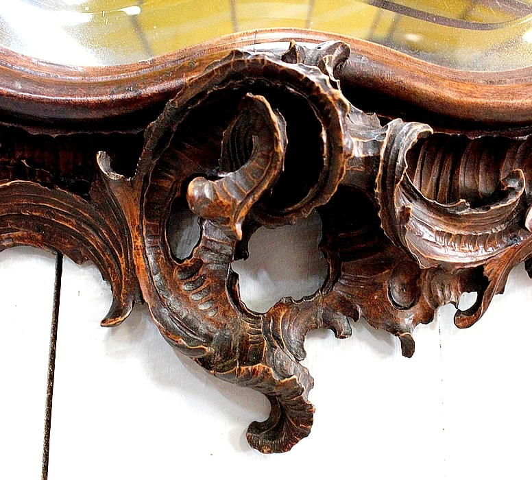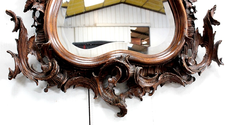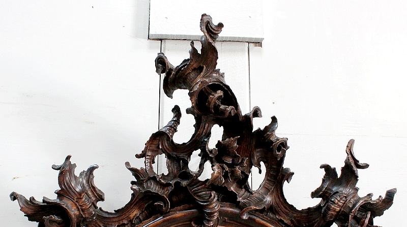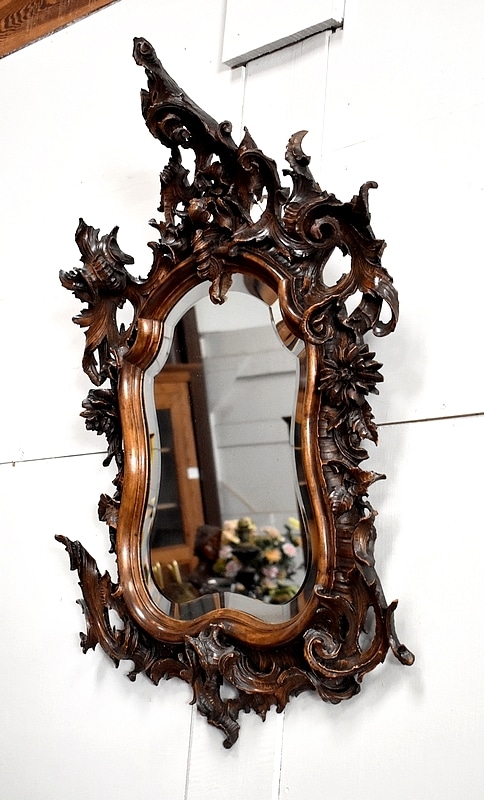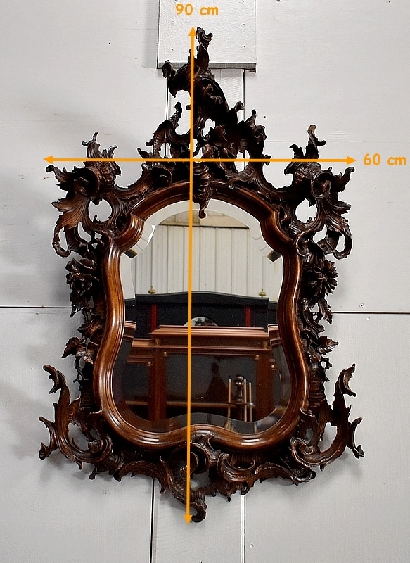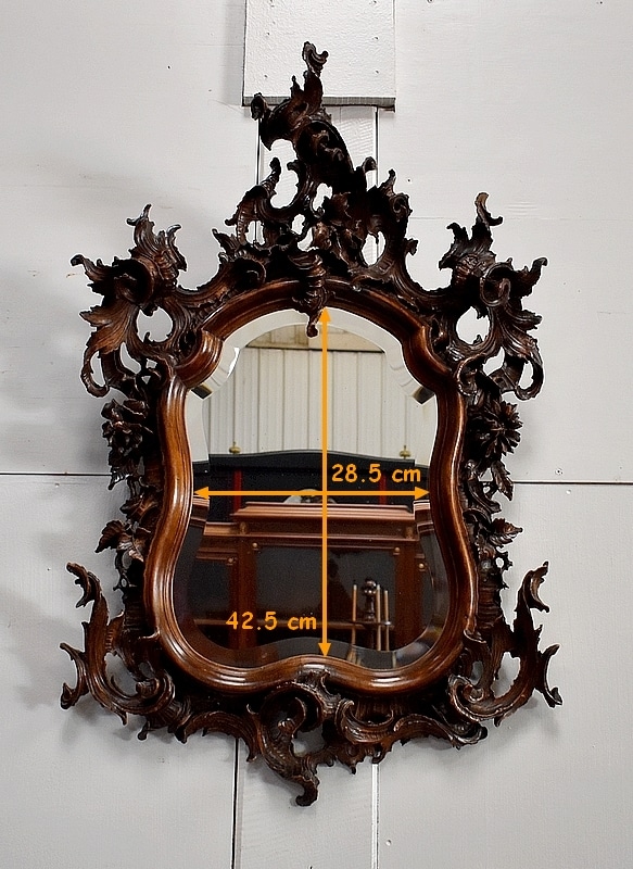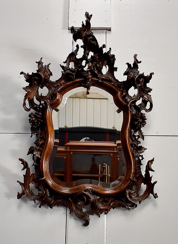 Admirable Miroir Mural Rocaille, en Noyer massif richement Ouvragé.