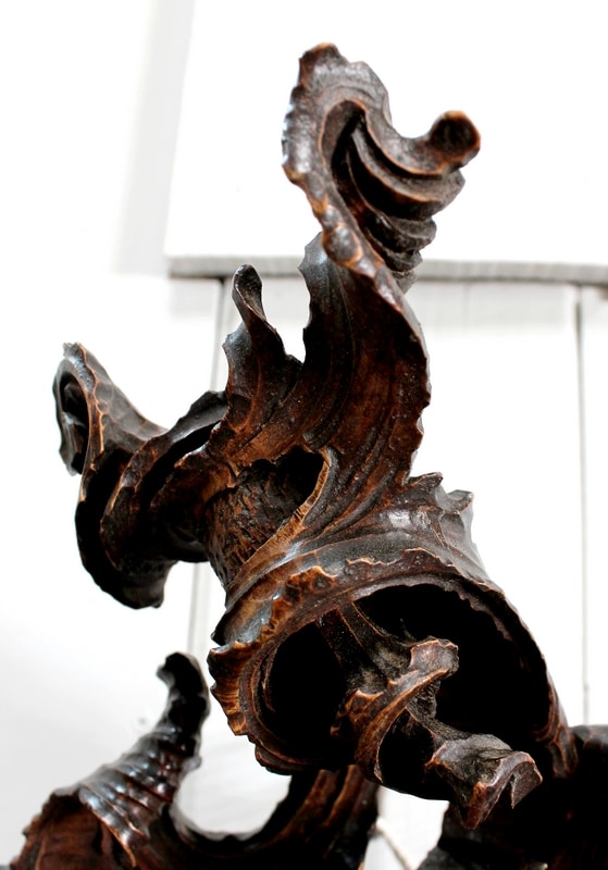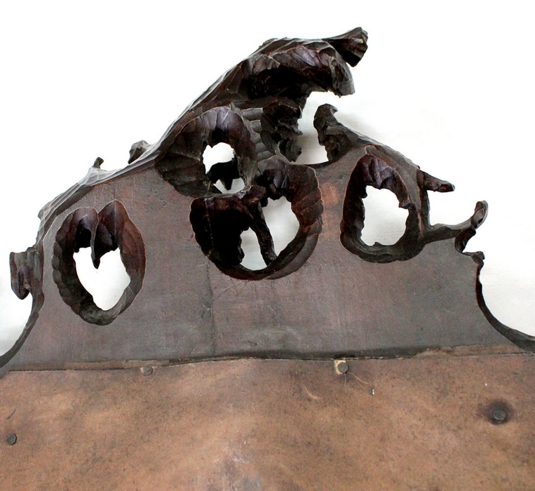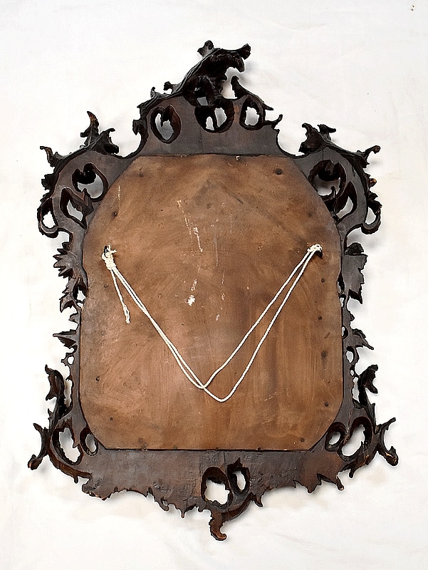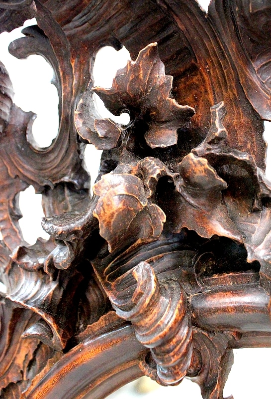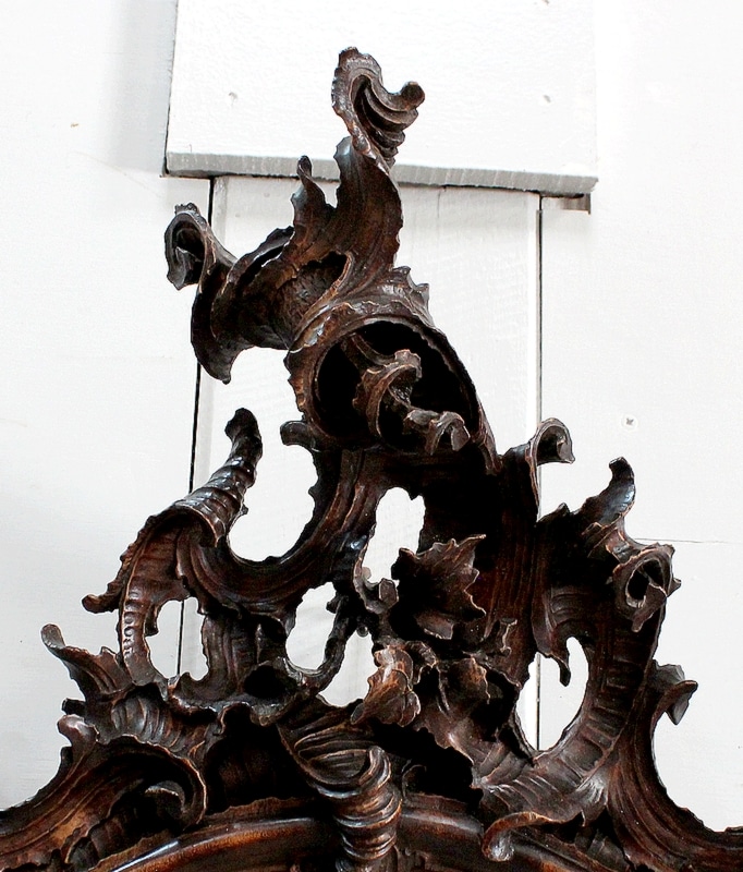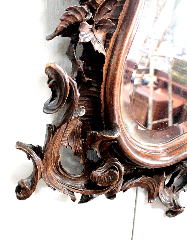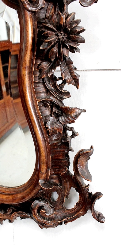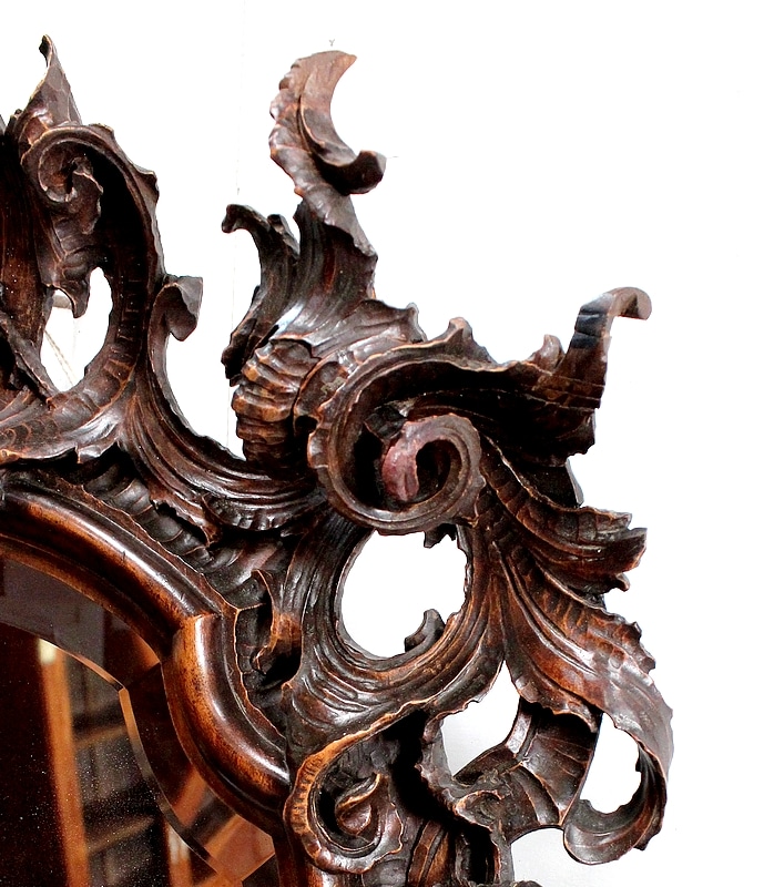 Admirable Miroir Mural Rocaille, en Noyer massif richement Ouvragé.