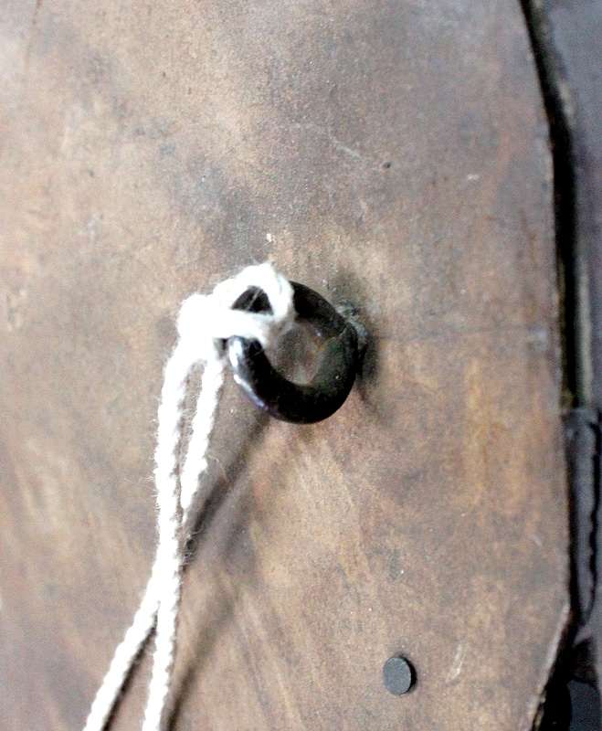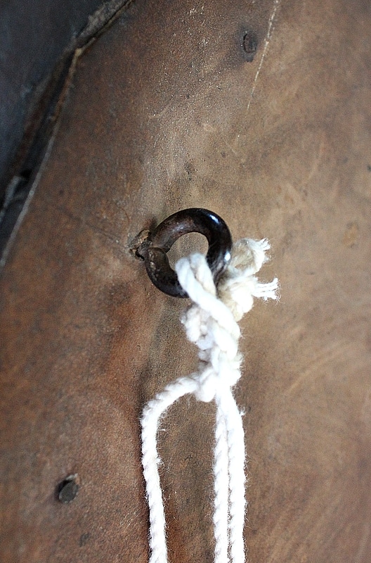 Au dos, ce bien est pourvu de deux anneaux et d’une cordelette nécessaires à sa suspension.