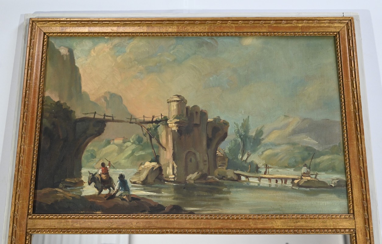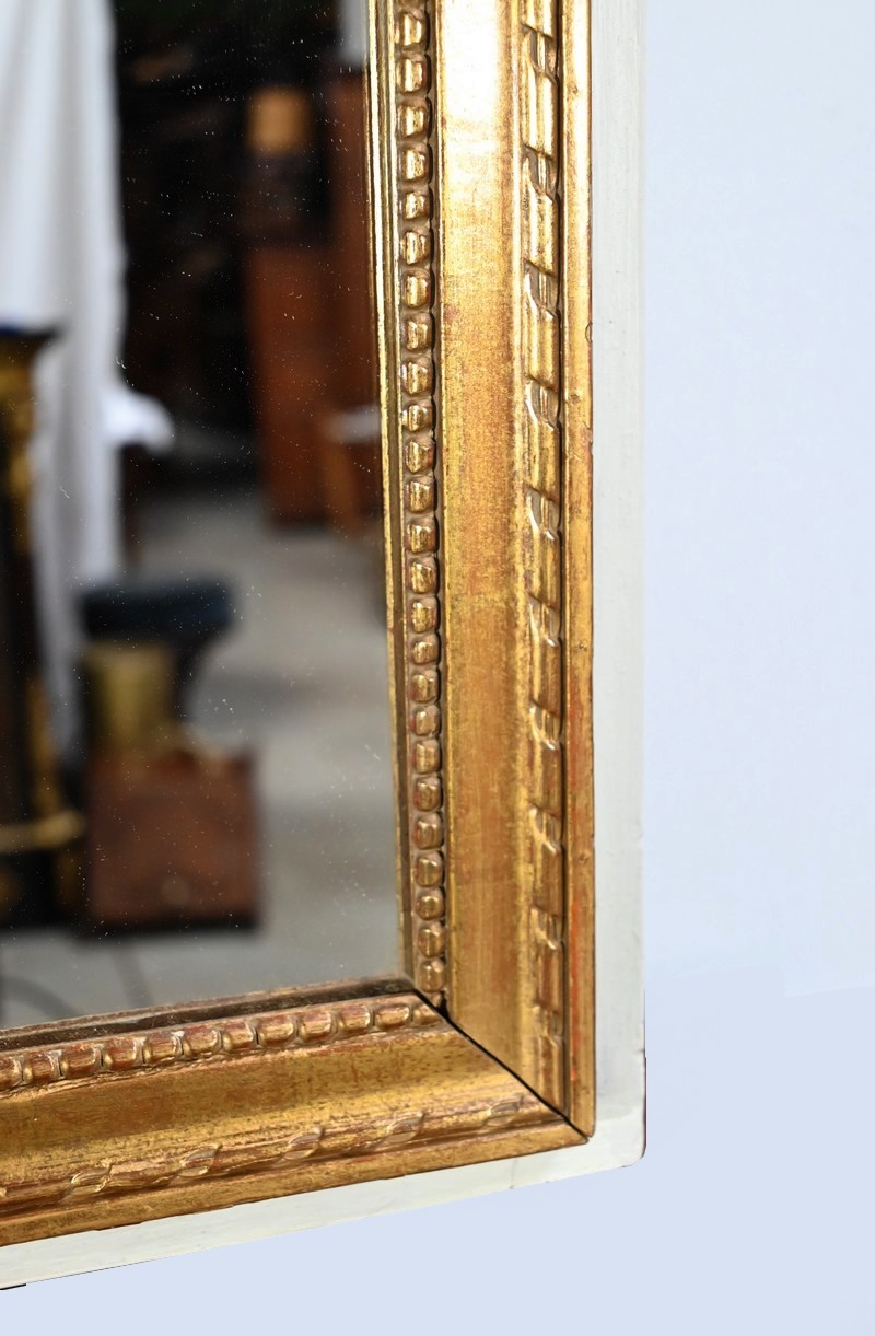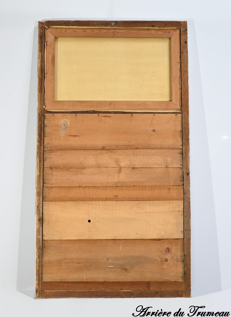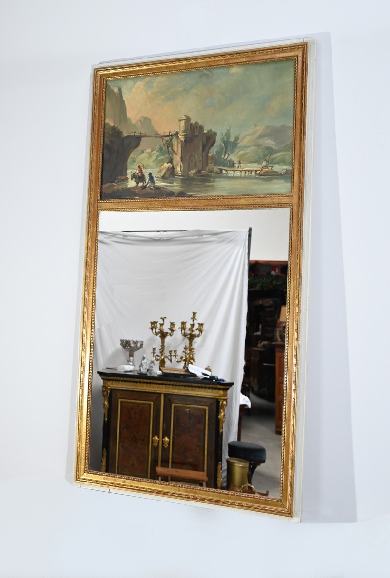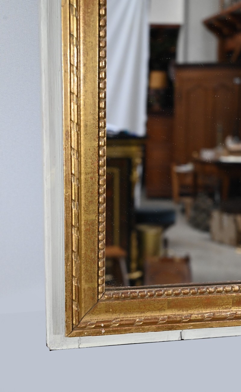 Ce miroir trumeau présente en partie inférieure une importante glace occupant environ deux tiers de la surface.