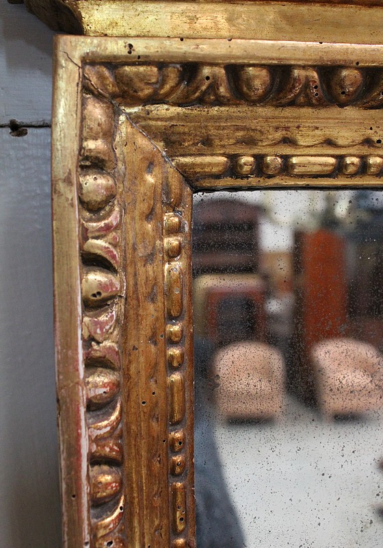 Sa glace au Mercure est d’origine et présente quelques traces de ses 150 ans d’histoires. Son encadrement est découpé en biseau et sculpté de plusieurs frises.