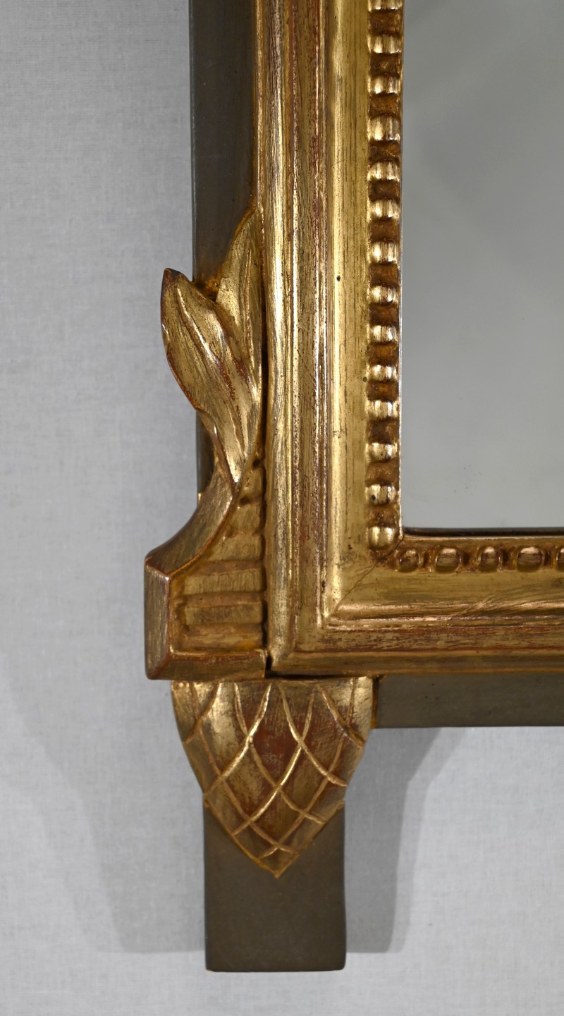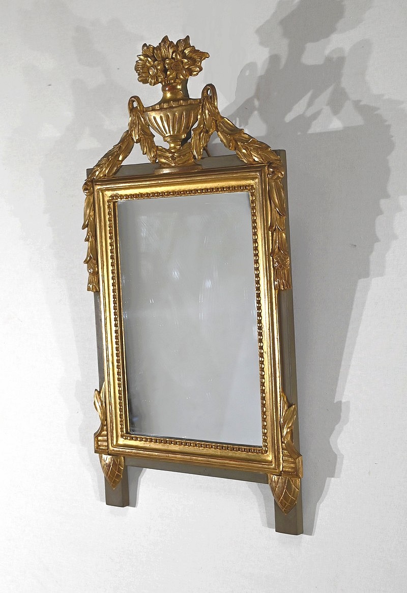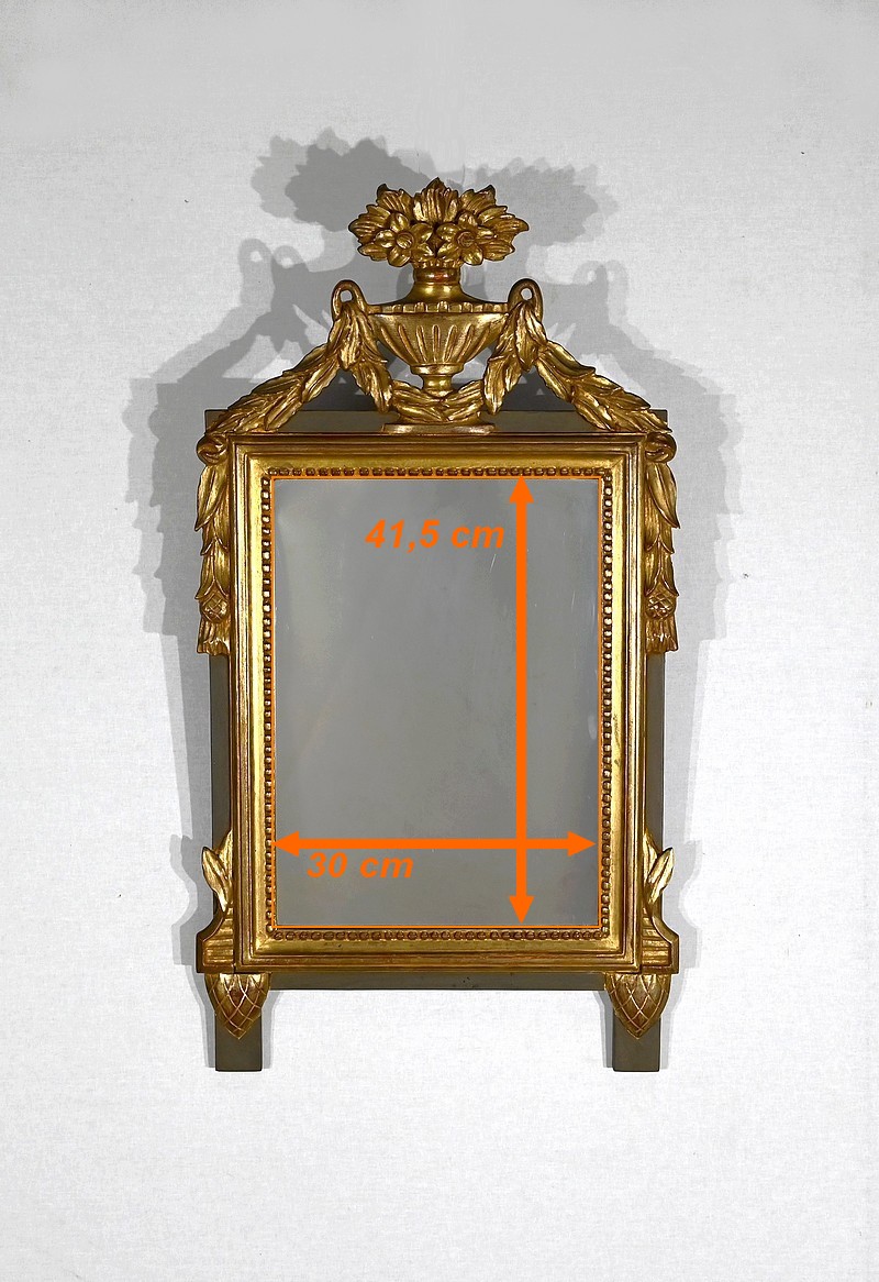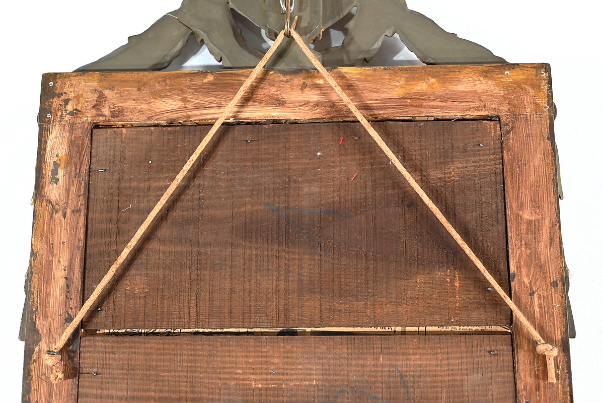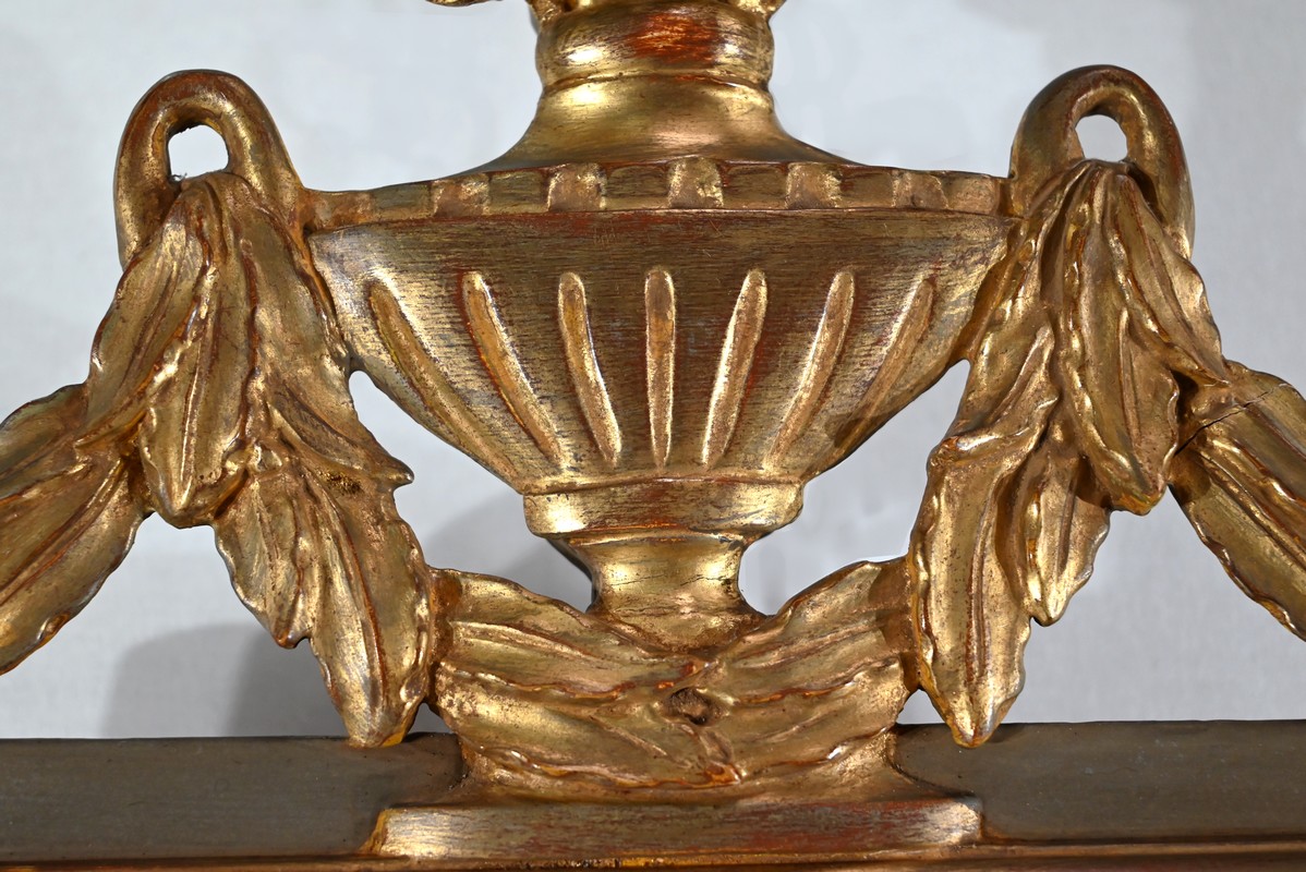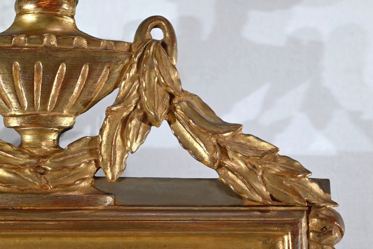 Cet article est sommé d’un grand fronton ajouré composé d’une coupe fleurie enroulé d’une guirlande de lauriers.