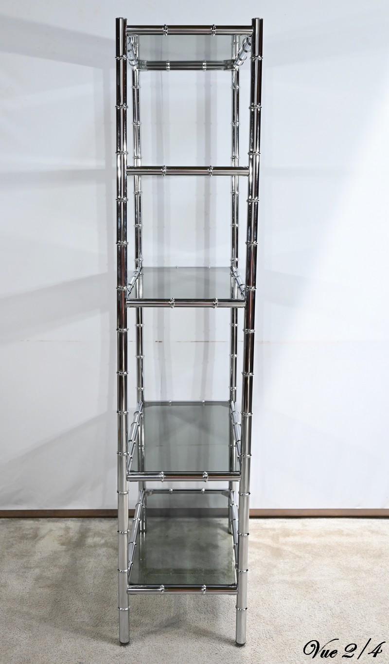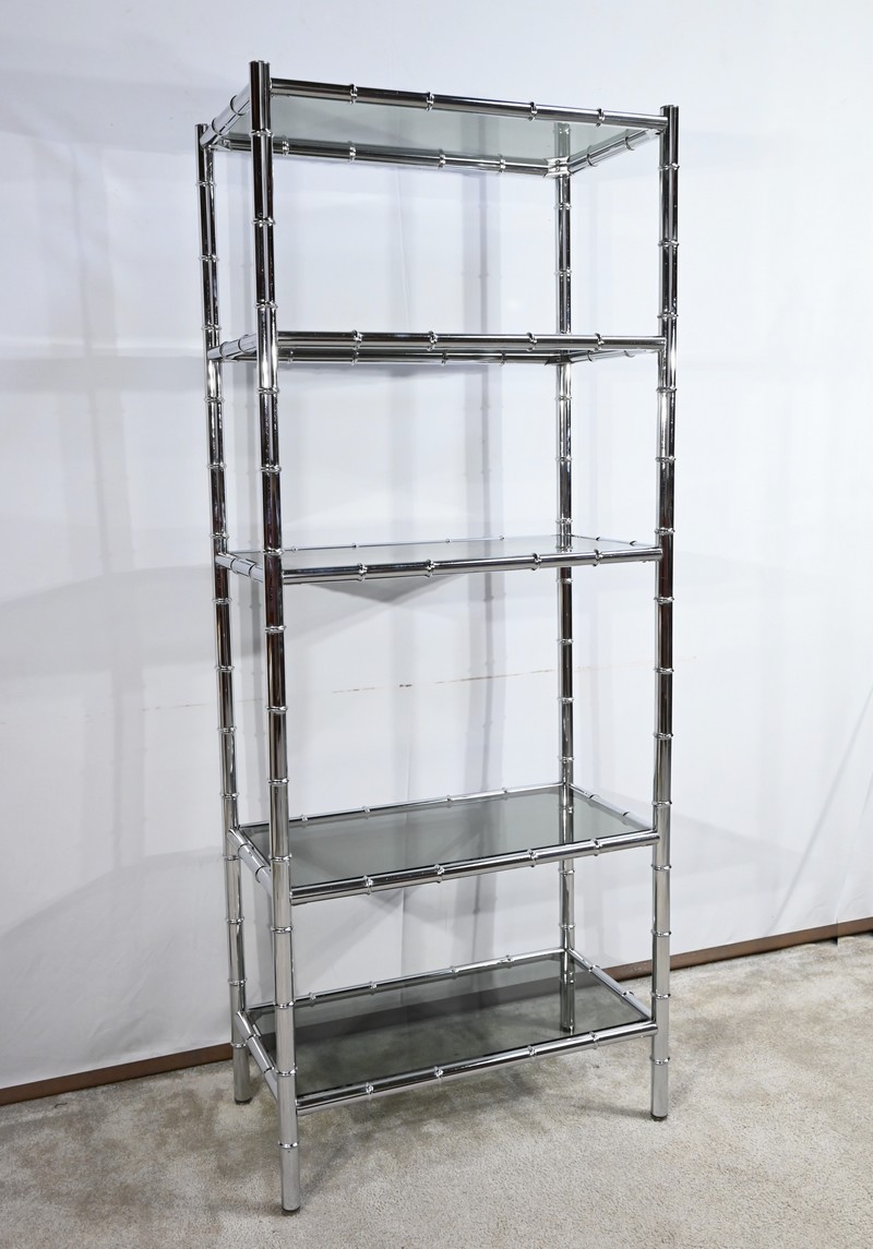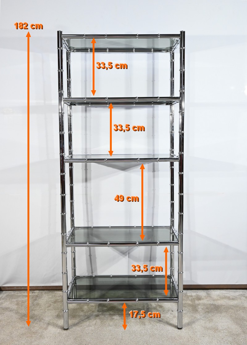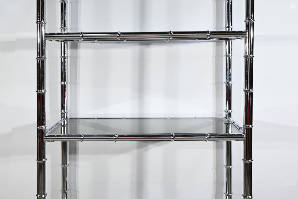 Étagère 5 Niveaux en Métal Chromé, esprit Bambou – 1970