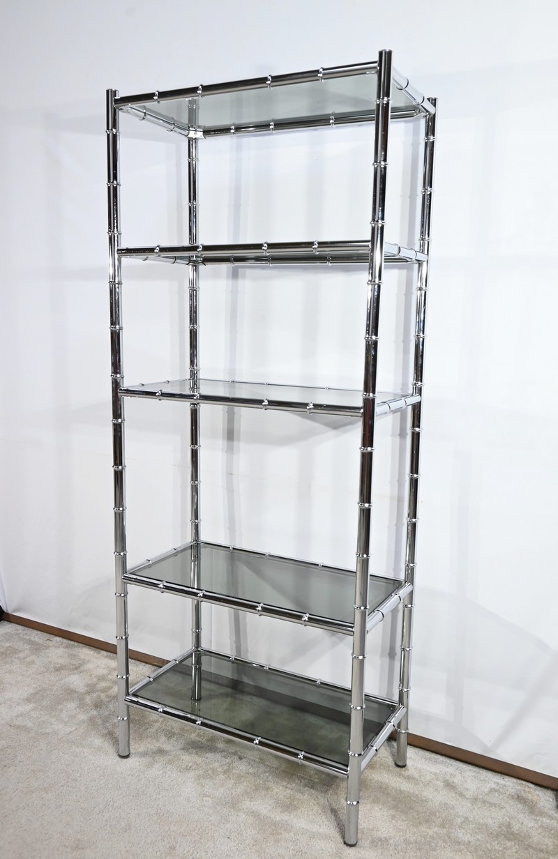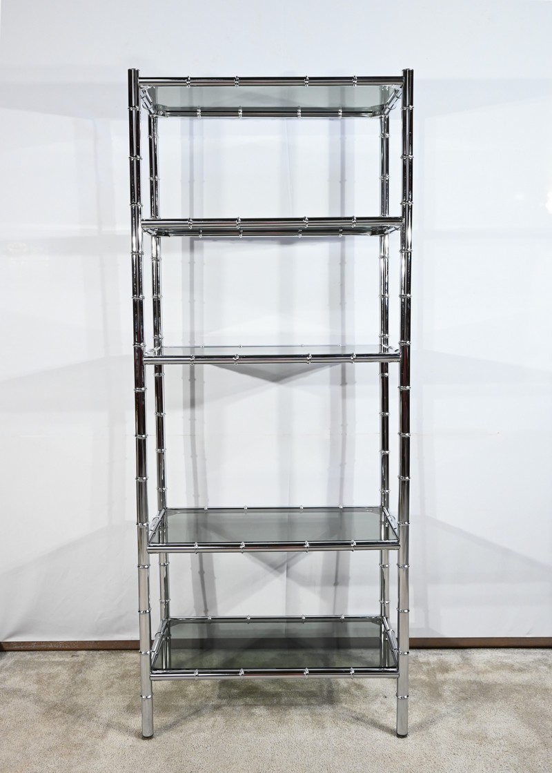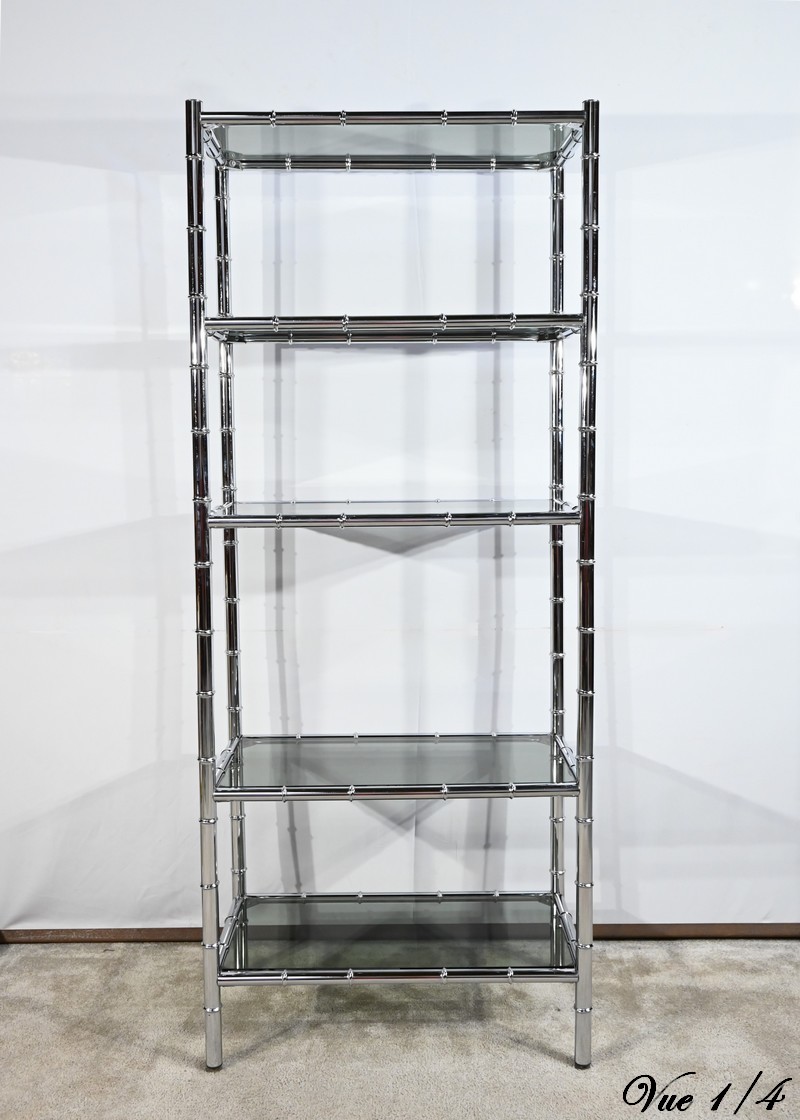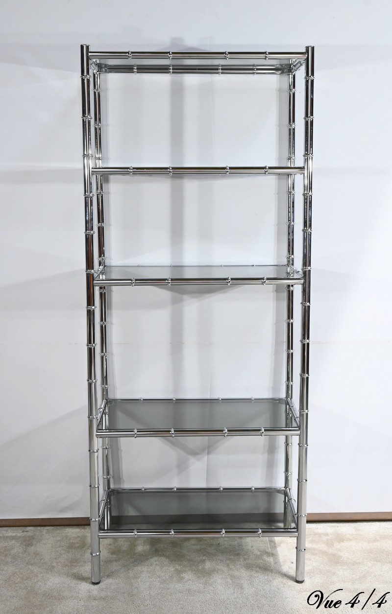 Étagère 5 Niveaux en Métal Chromé, esprit Bambou – 1970