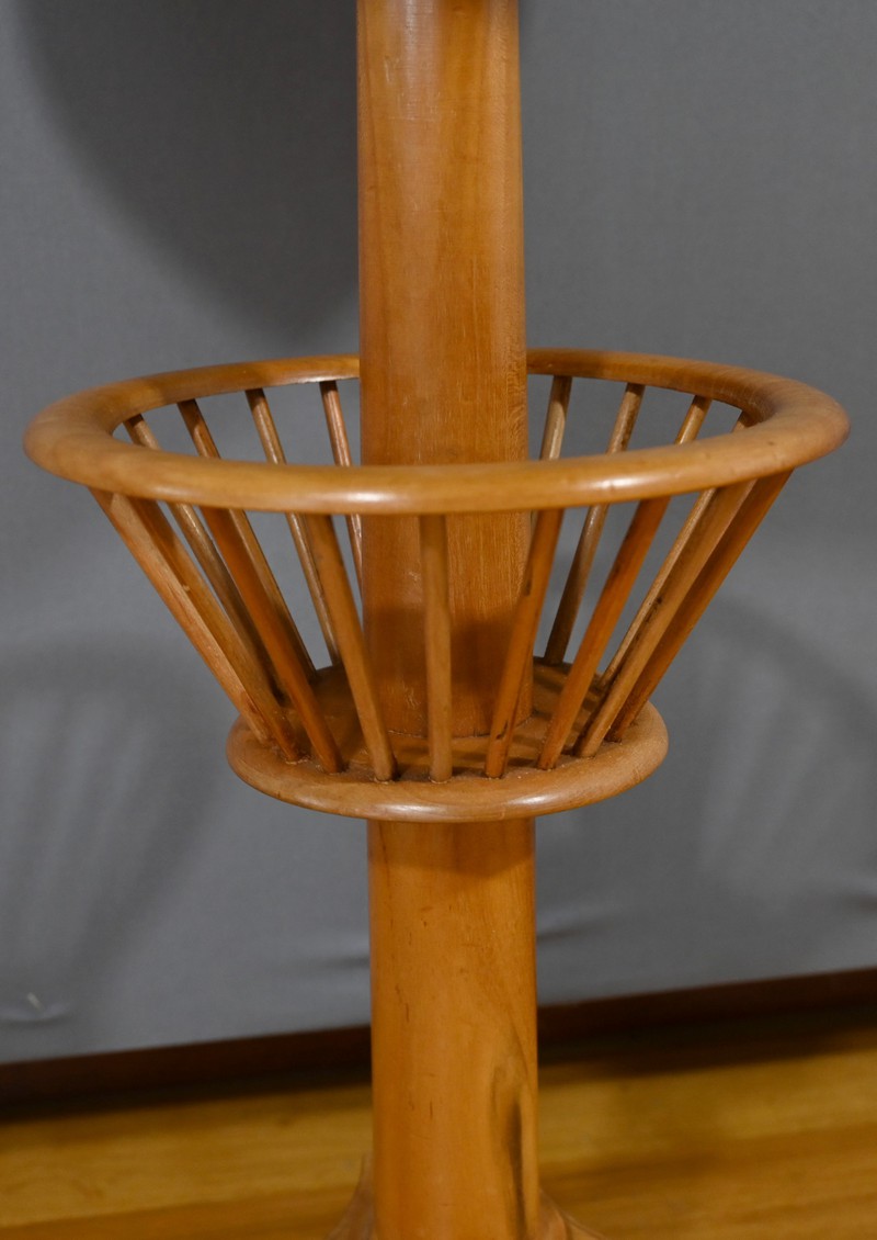 Le pied tripode, agrémenté d’un panier porte-bobines, confère à ce guéridon une stabilité et une praticité supplémentaires.