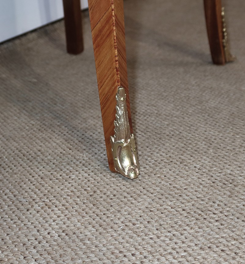 De chaque côté des meubles, des pieds galbés avec chutes bronze en partie haute, se terminent par sabot tombant.