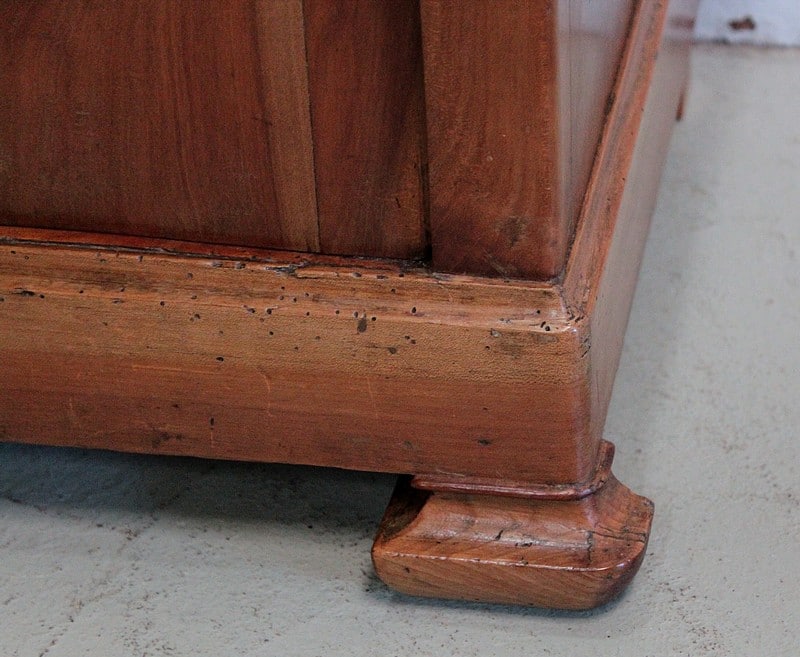 Il repose sur 2 pieds moulurés à l’avant et 2 pieds droits à l’arrière.