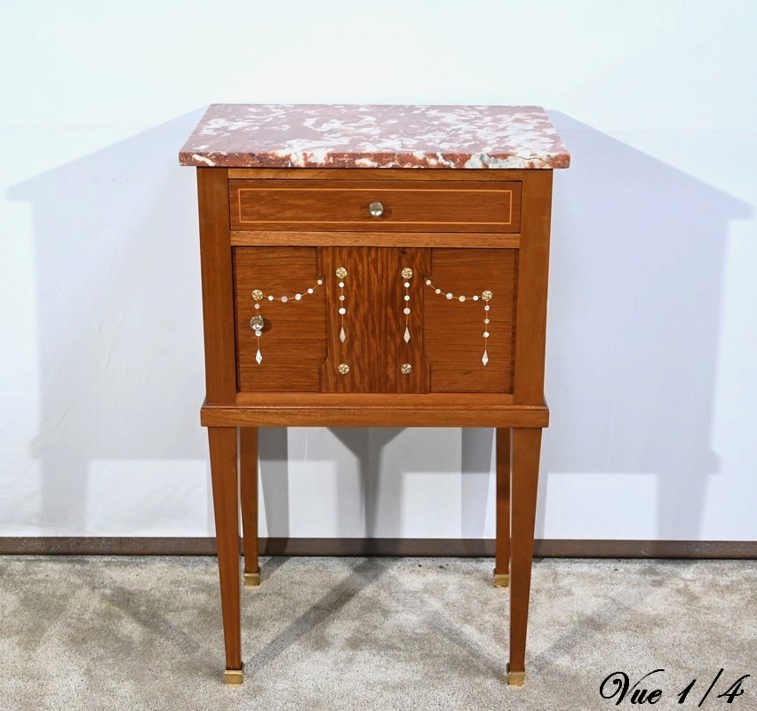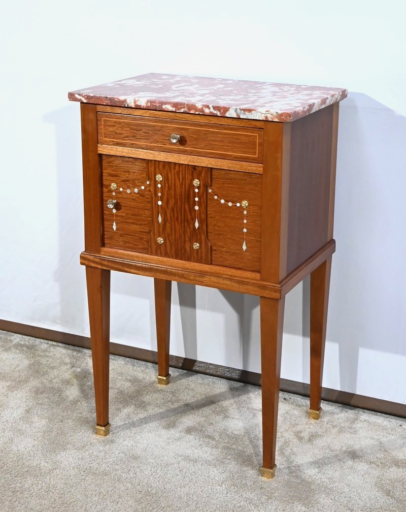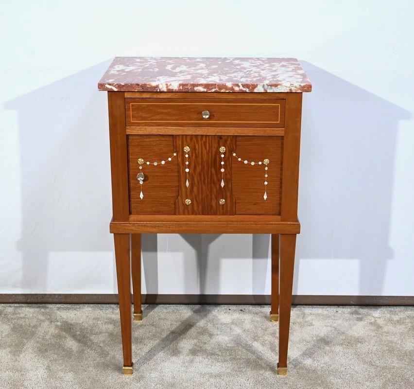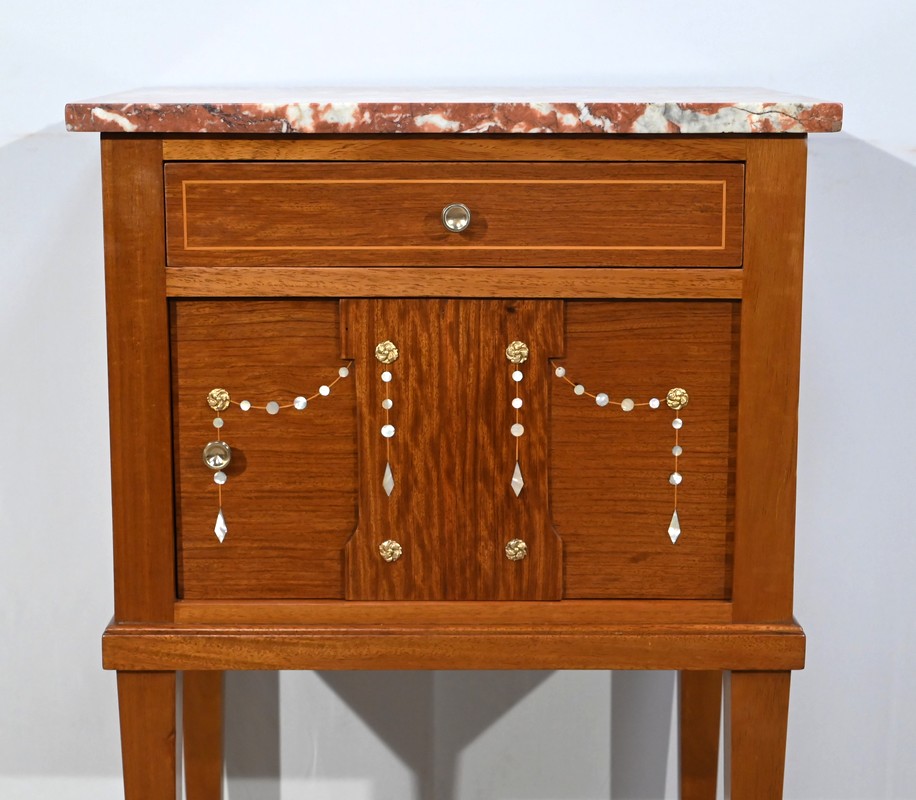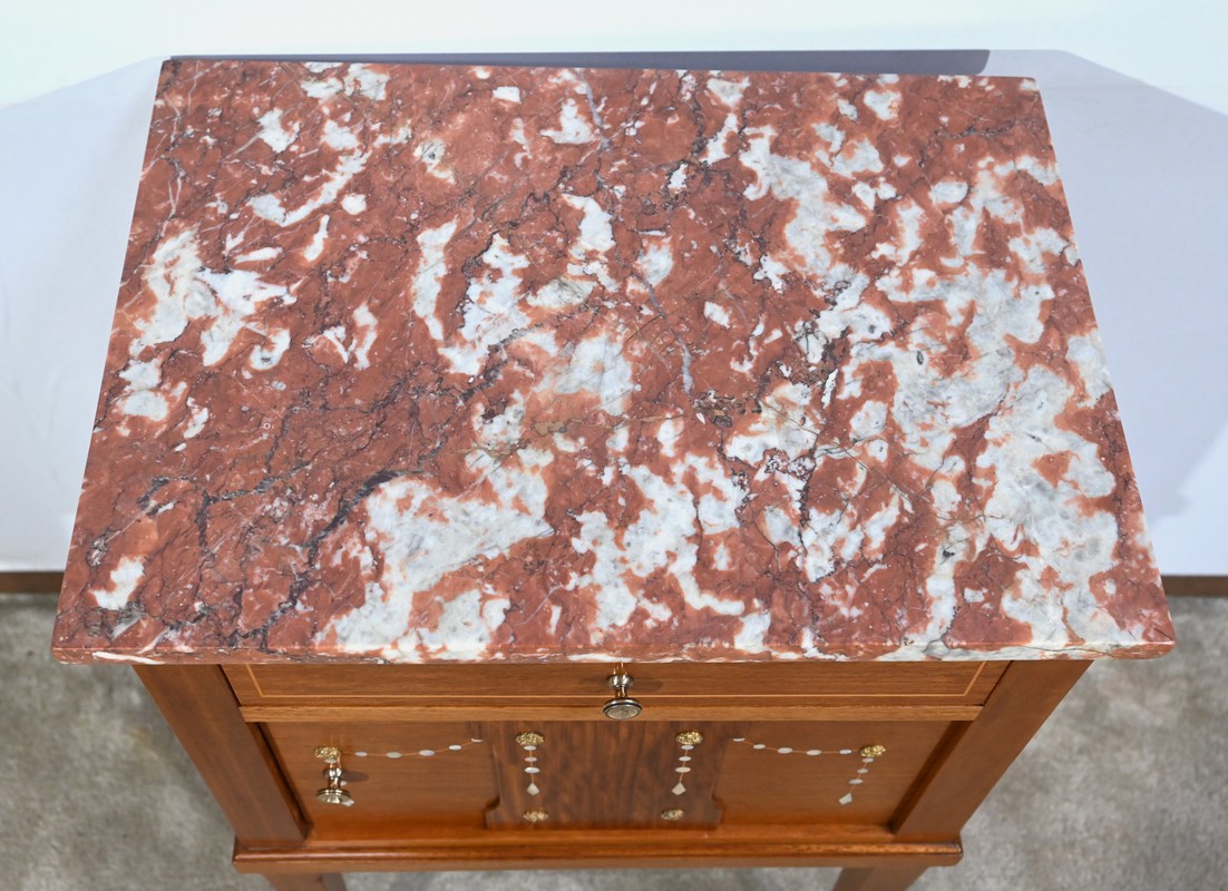 Ce petit meuble est sommé d’un marbre griotte des Pyrénées.