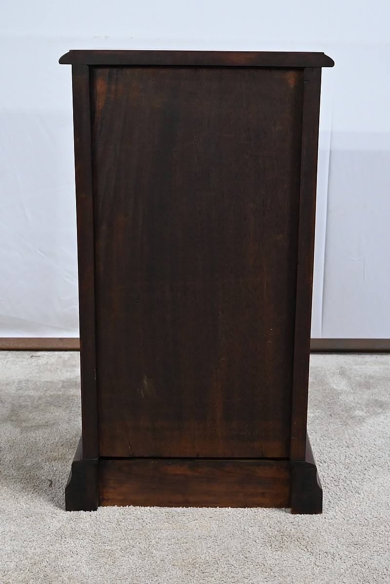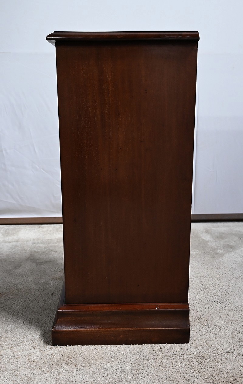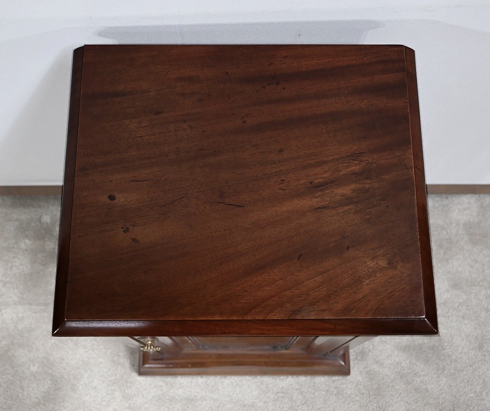 Enfin, le dessus est constitué d’une seule planche d’acajou massif avec moulure en bec de corbin dans le pourtour.