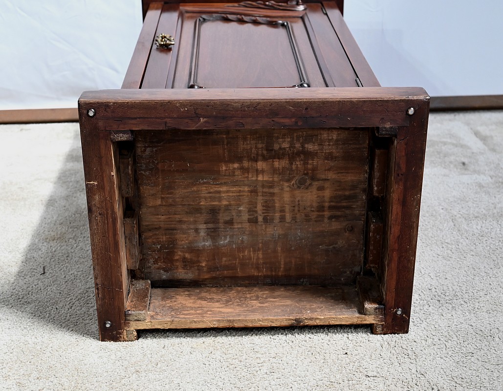 Ce meuble possède une plinthe en saillie avec une importante mouluration sur son pourtour.