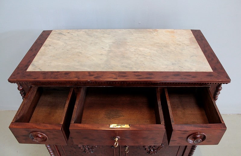 Depuis 50 ans, chaque pièce de mobilier est minutieusement restaurée avec passion dans notre atelier d’ébénisterie.