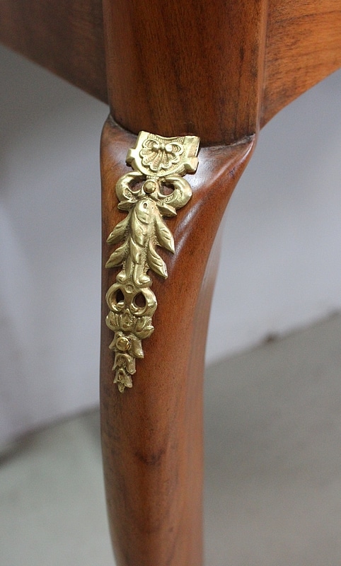 L’ensemble repose sur quatre pieds Galbés. Ceux de l’avant sont Ornementés de Bronzes ciselés en feuillages en parties hautes et basses.