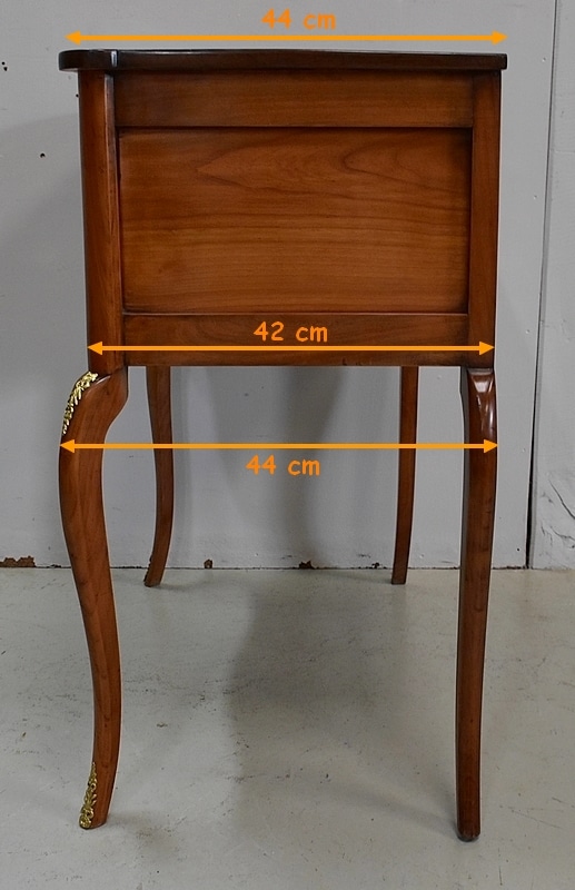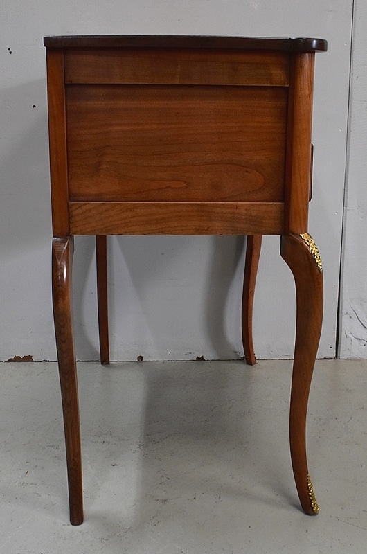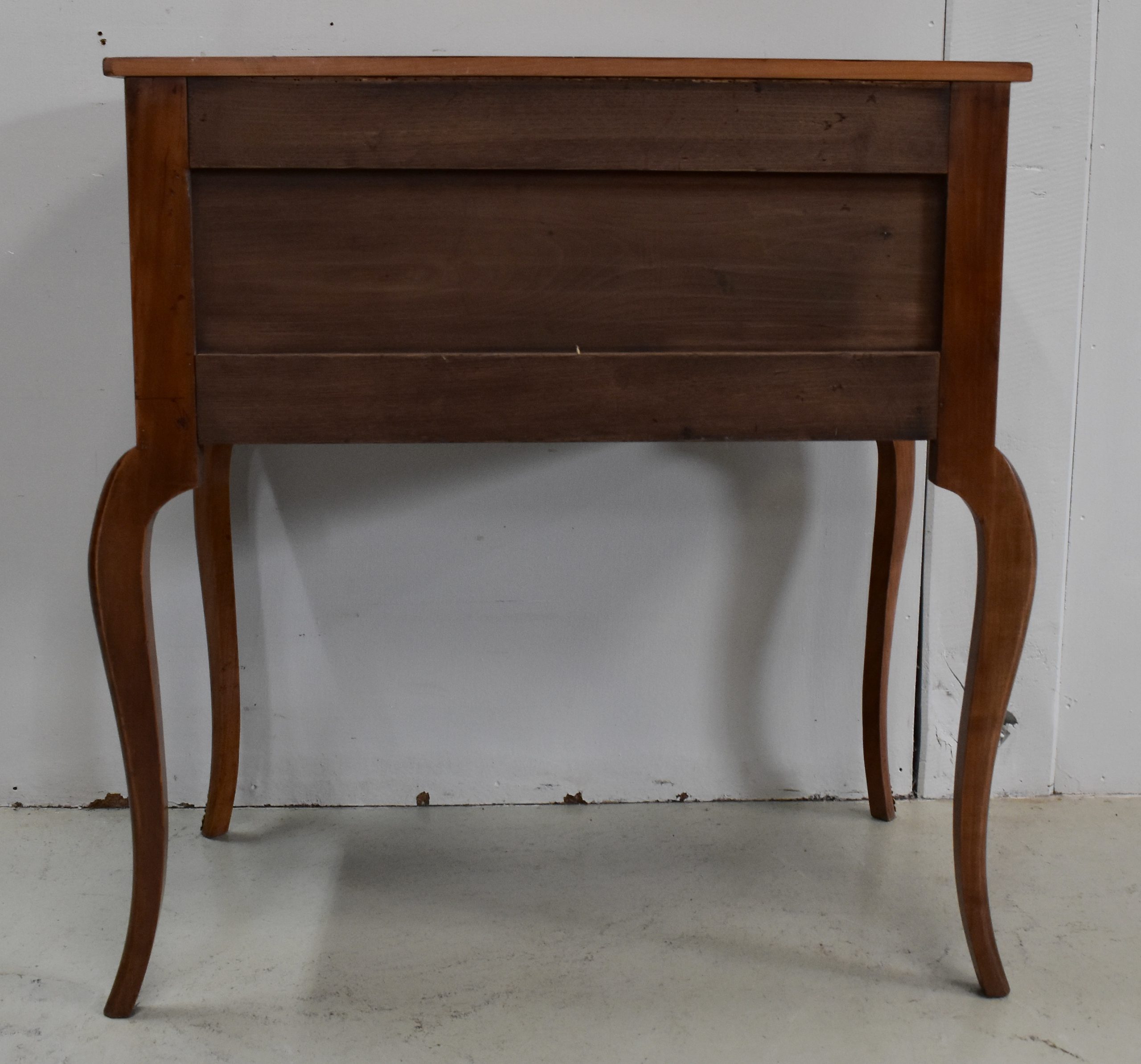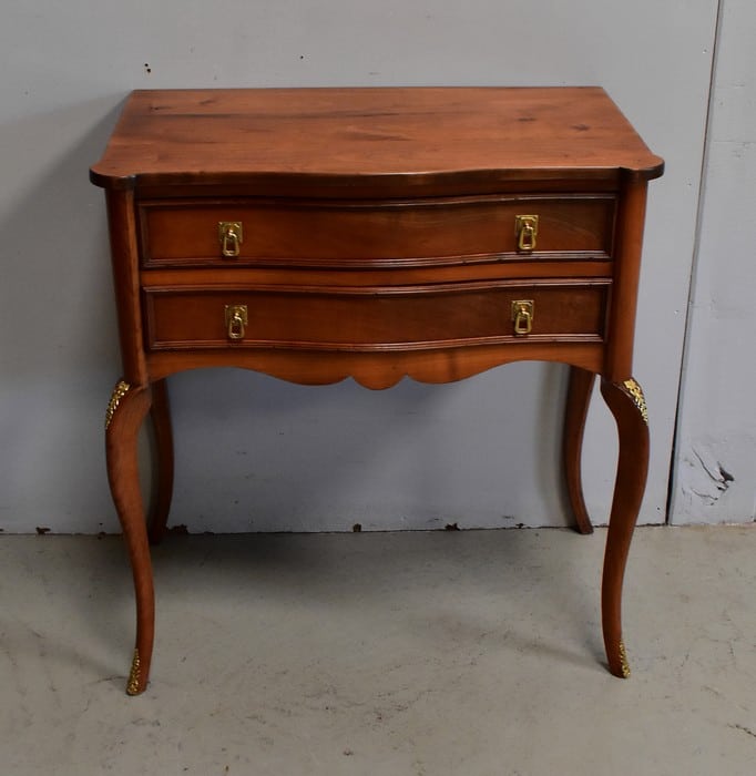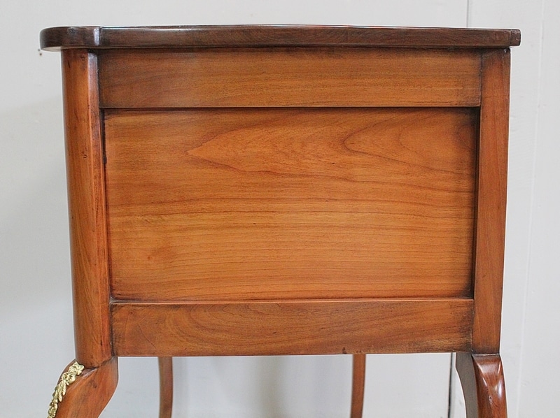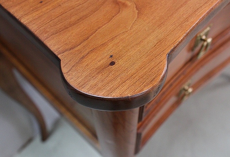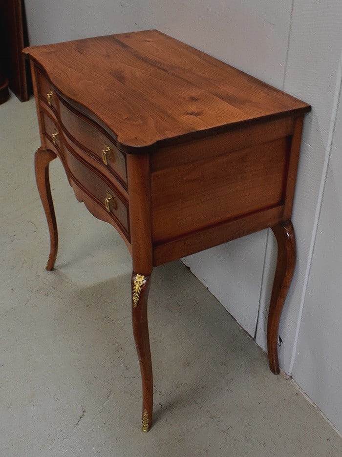 Petite Commode ‘Perruquière’, en Merisier massif, avec dessus Bois à débords et aux angles avant arrondis.