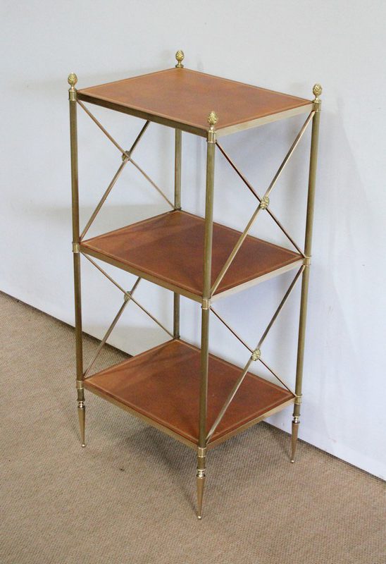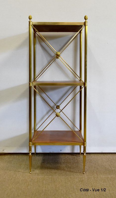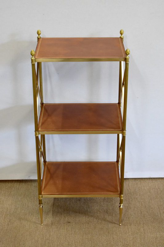 Petite étagère Desserte à 3 plateaux en Laiton, Maison Jansen – 1970