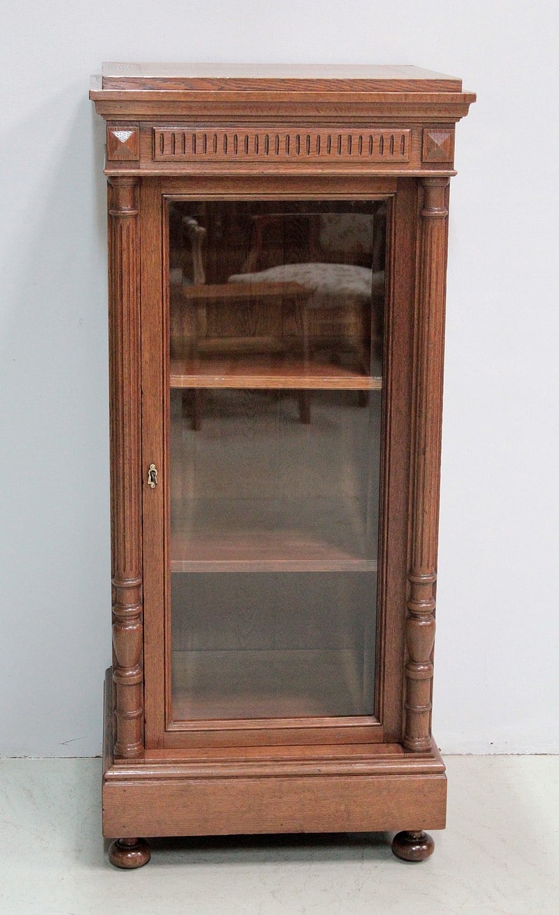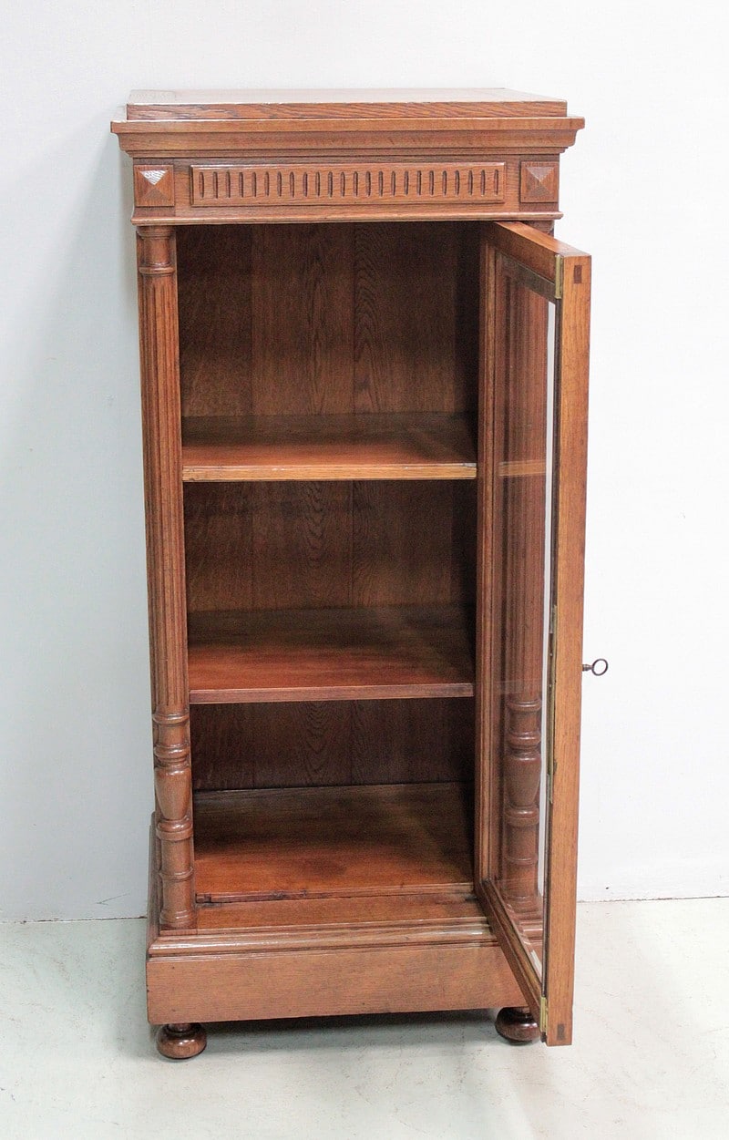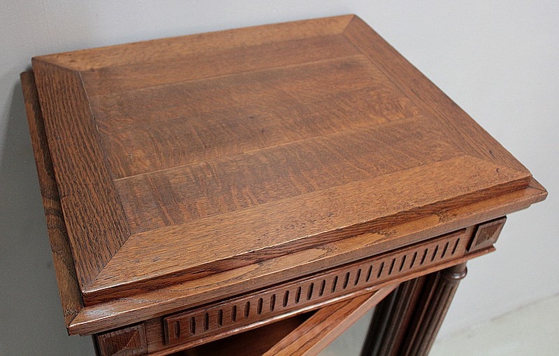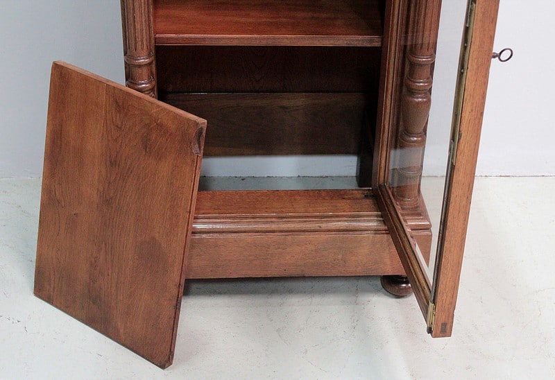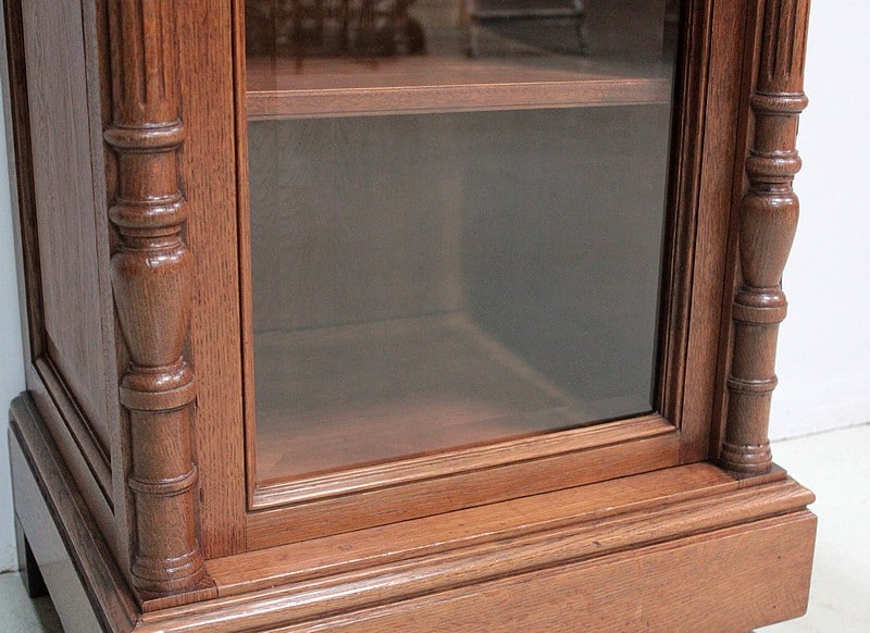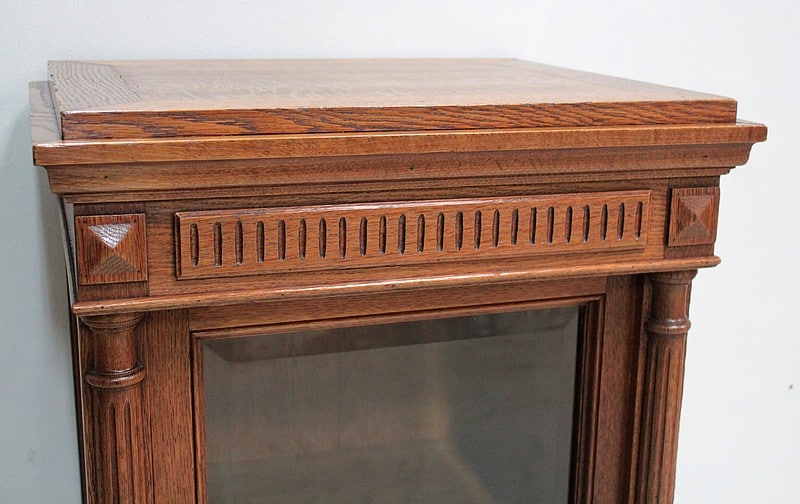 Petite vitrine droite de style Louis XVI entièrement en chêne massif à hauteur d’appui.
