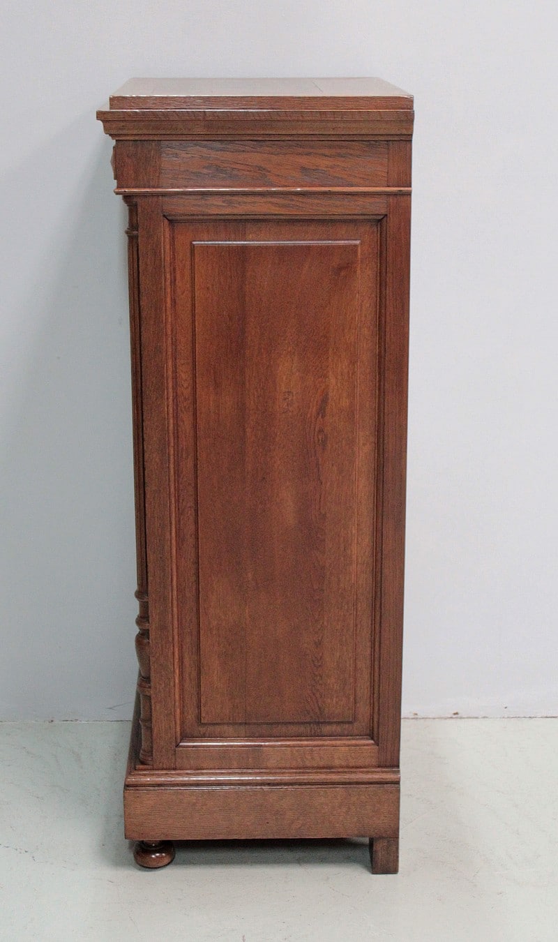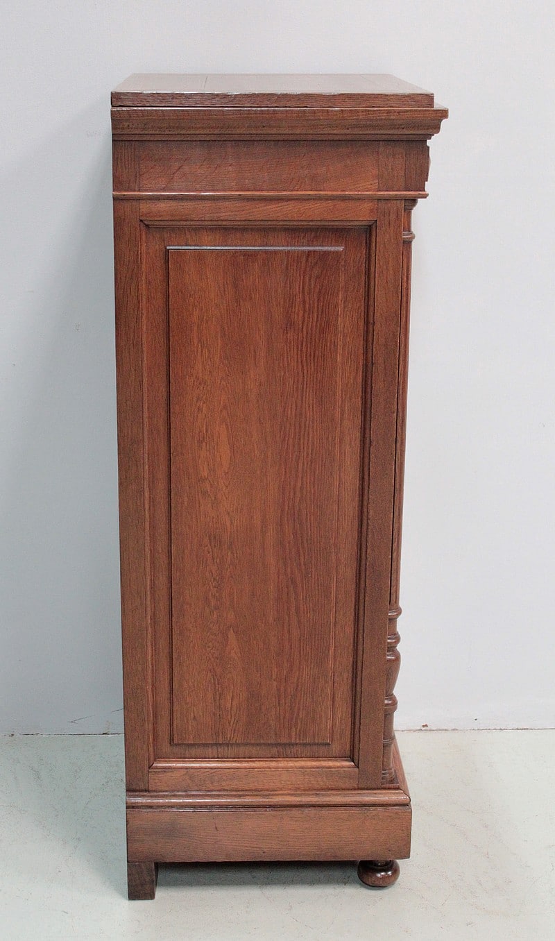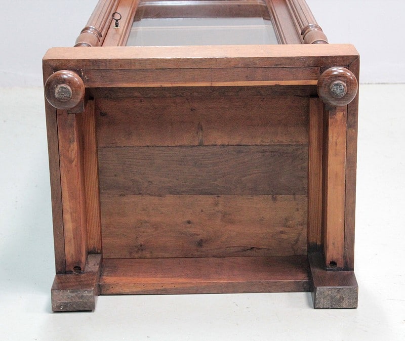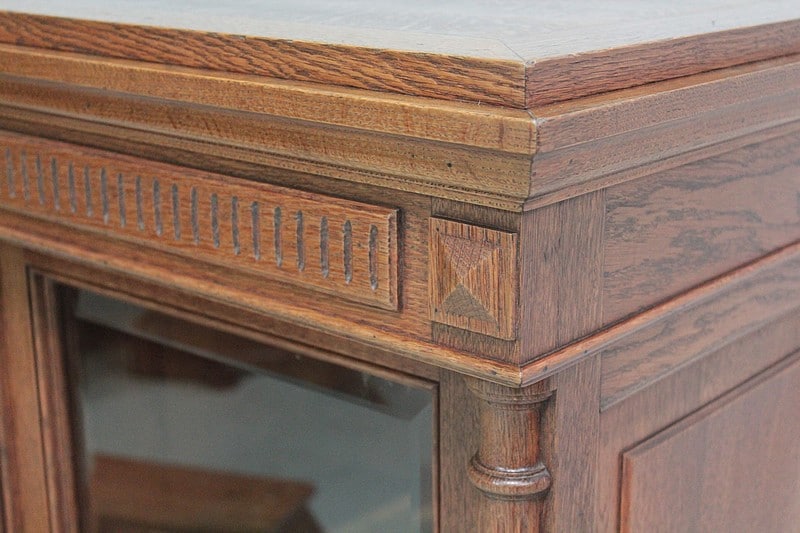 Petite vitrine droite de style Louis XVI entièrement en chêne massif à hauteur d’appui.