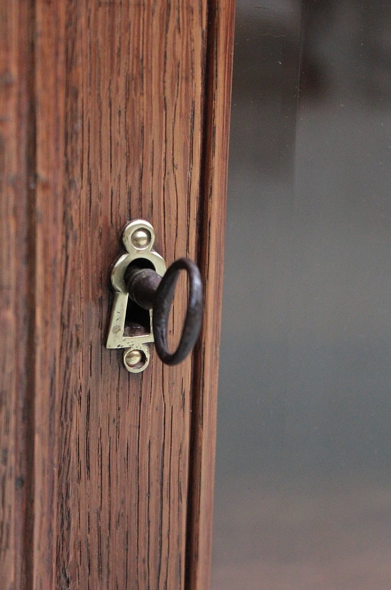Elle ferme par une serrure haut et bas en bon état de fonctionnement.
