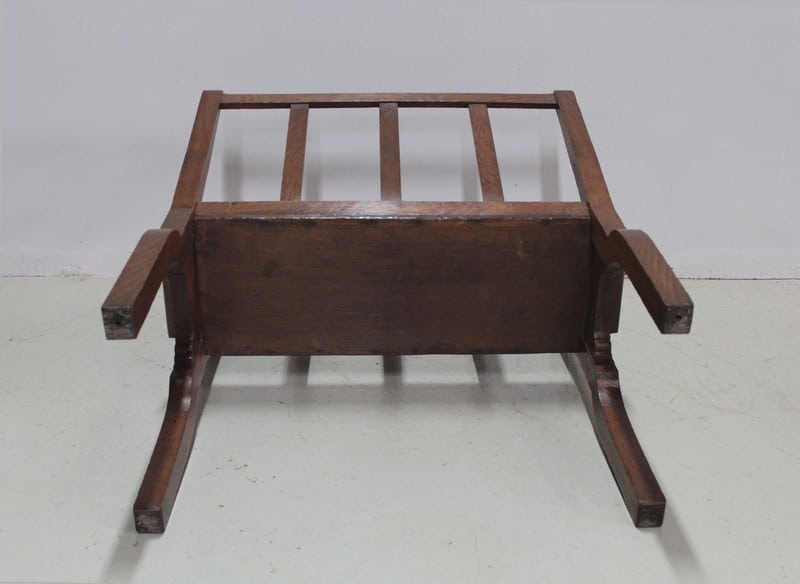 Porte-revue en chêne, reposant sur quatre pieds galbés.