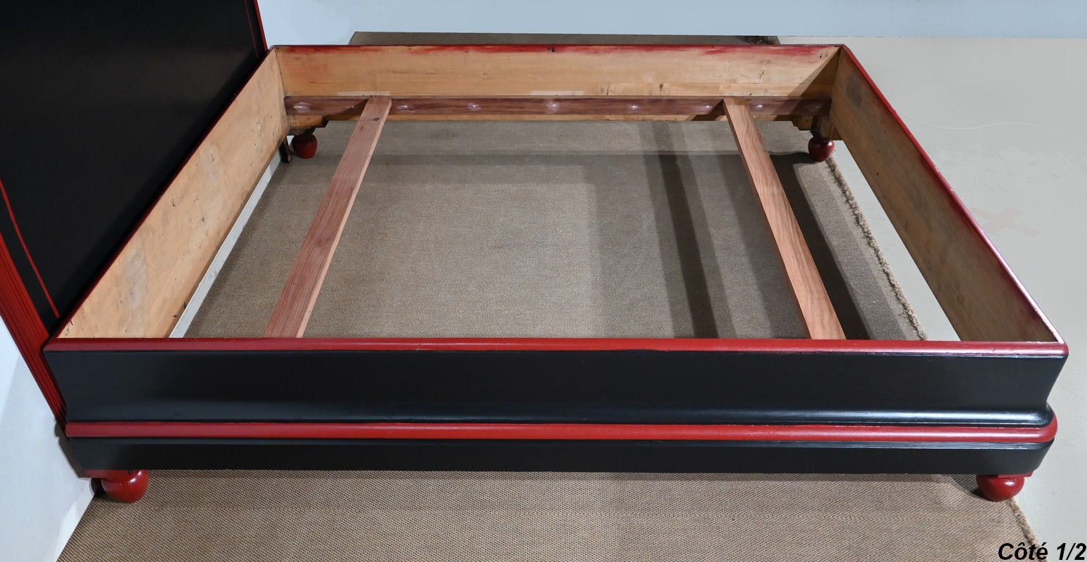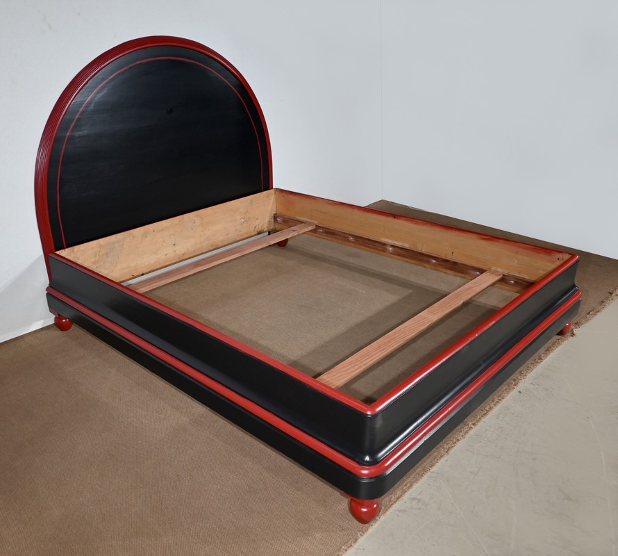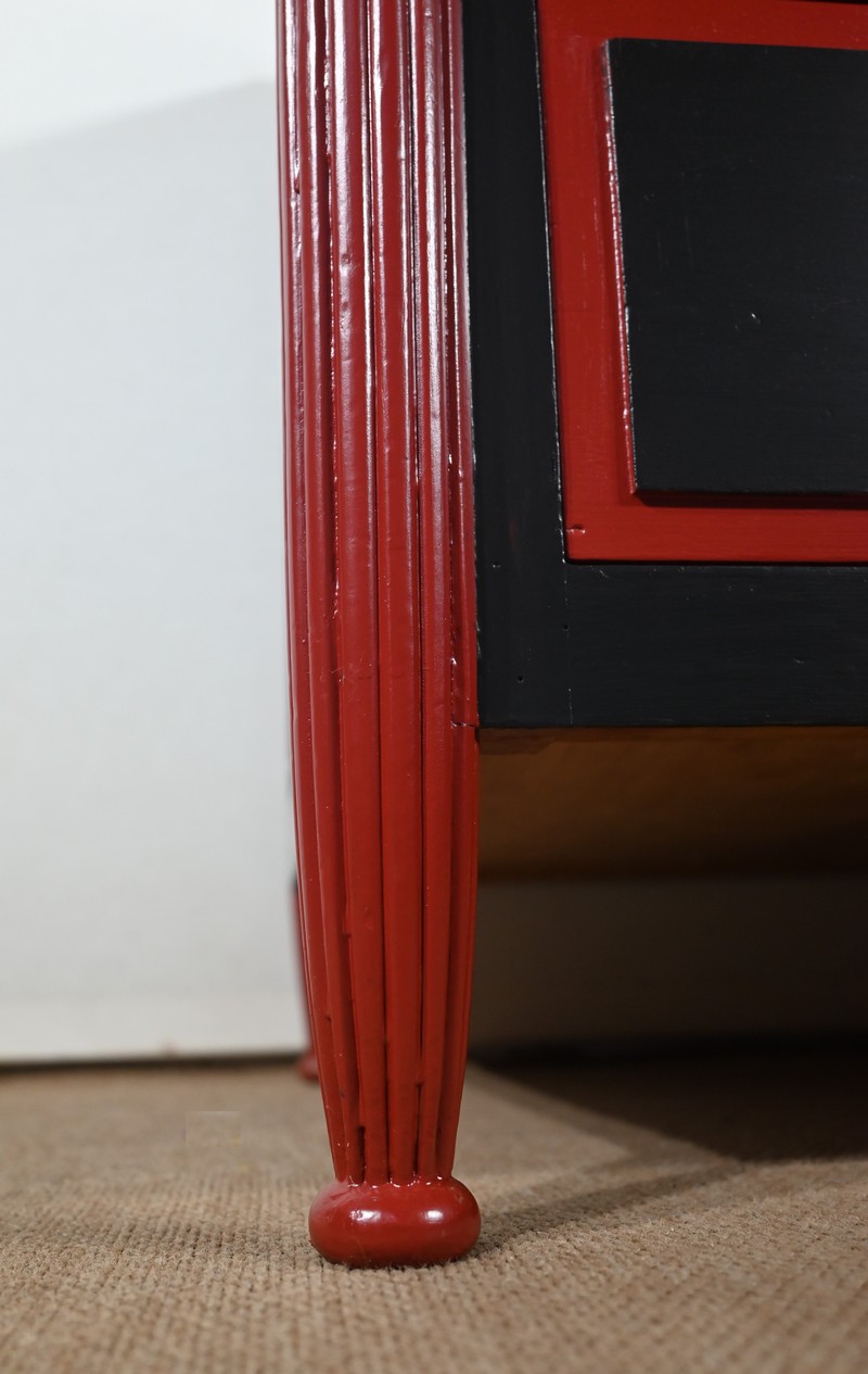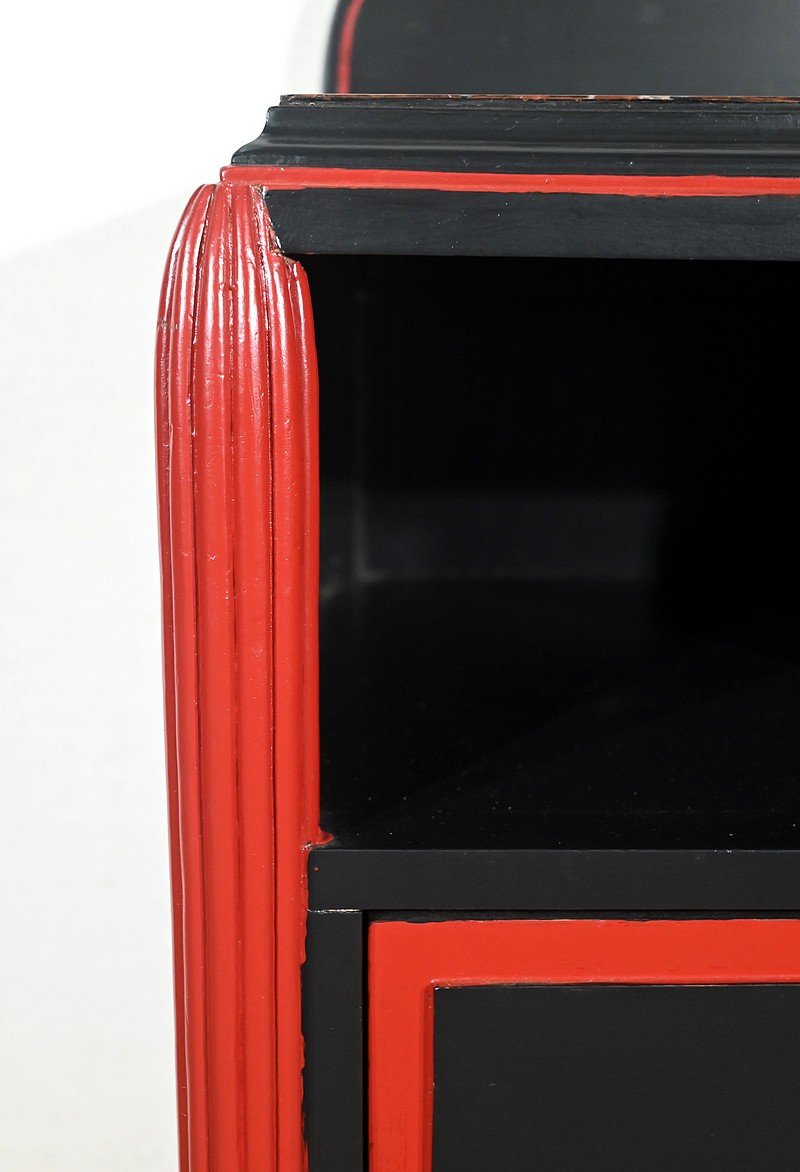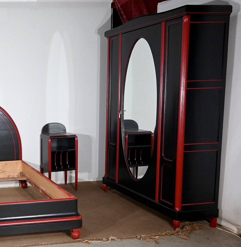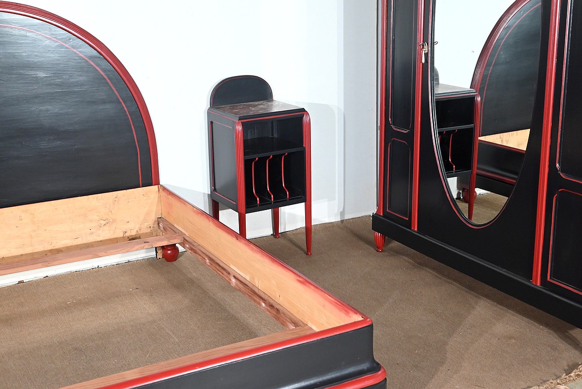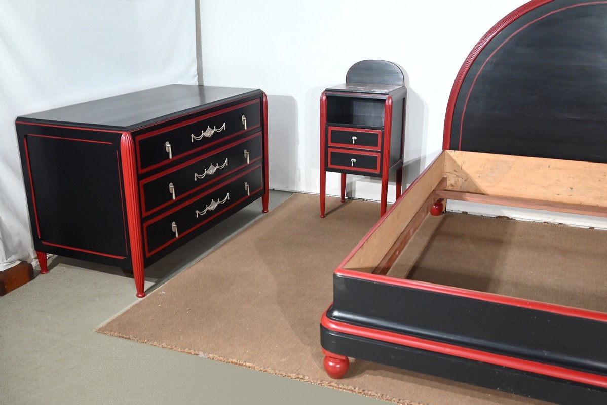 Rare ensemble de Chambre 5 pièces, en bois peint de couleurs noire et rouge sang de bœuf, d’époque Art Déco.