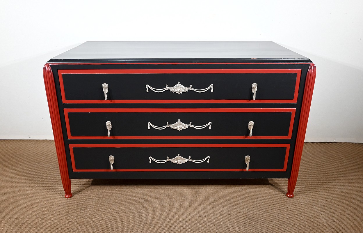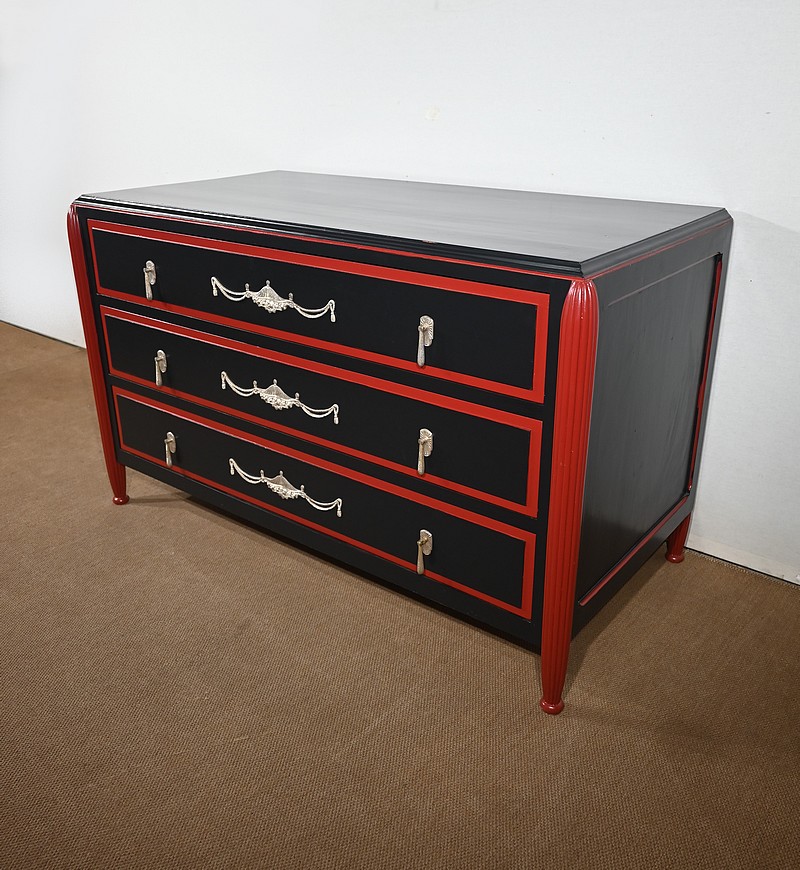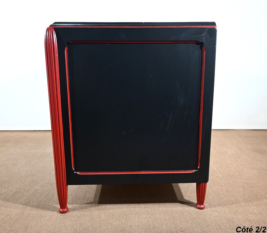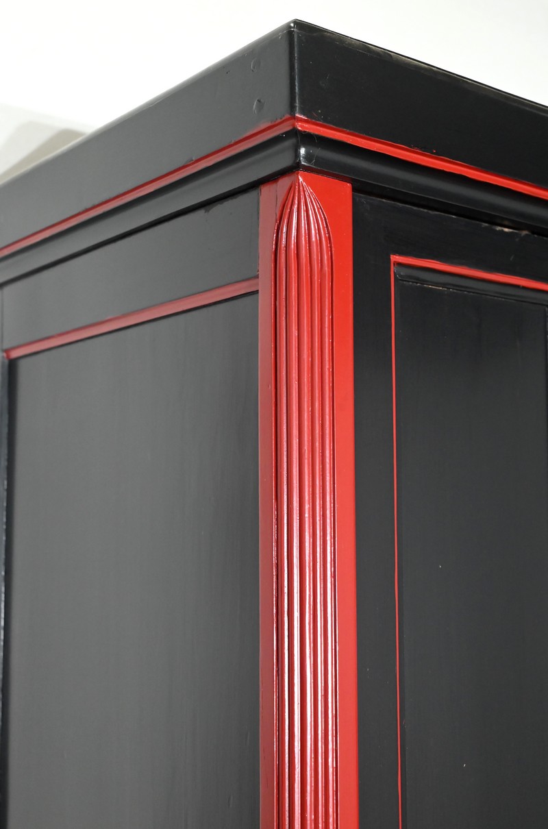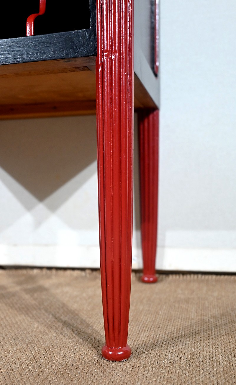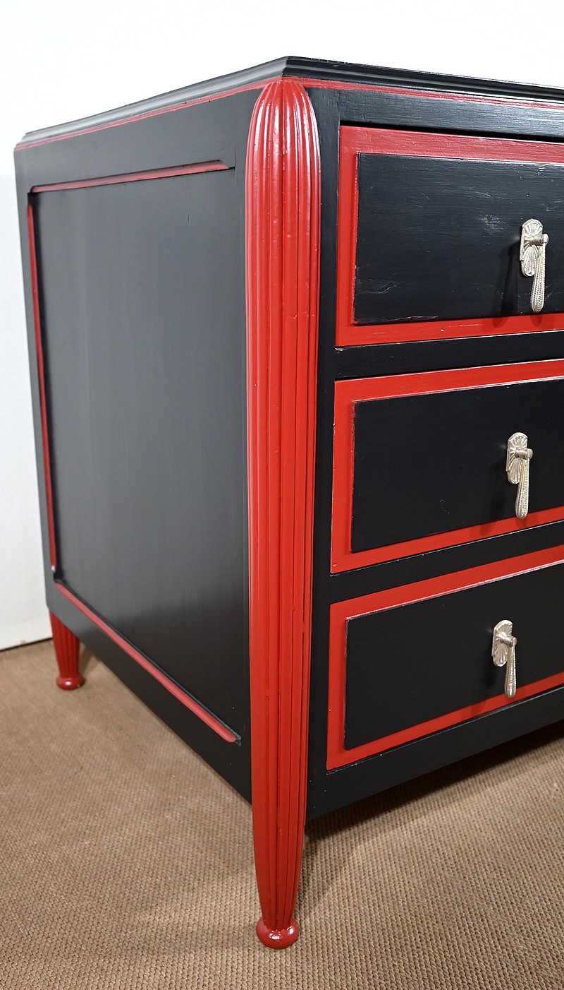 Rare ensemble de Chambre 5 pièces, en bois peint de couleurs noire et rouge sang de bœuf, d’époque Art Déco.