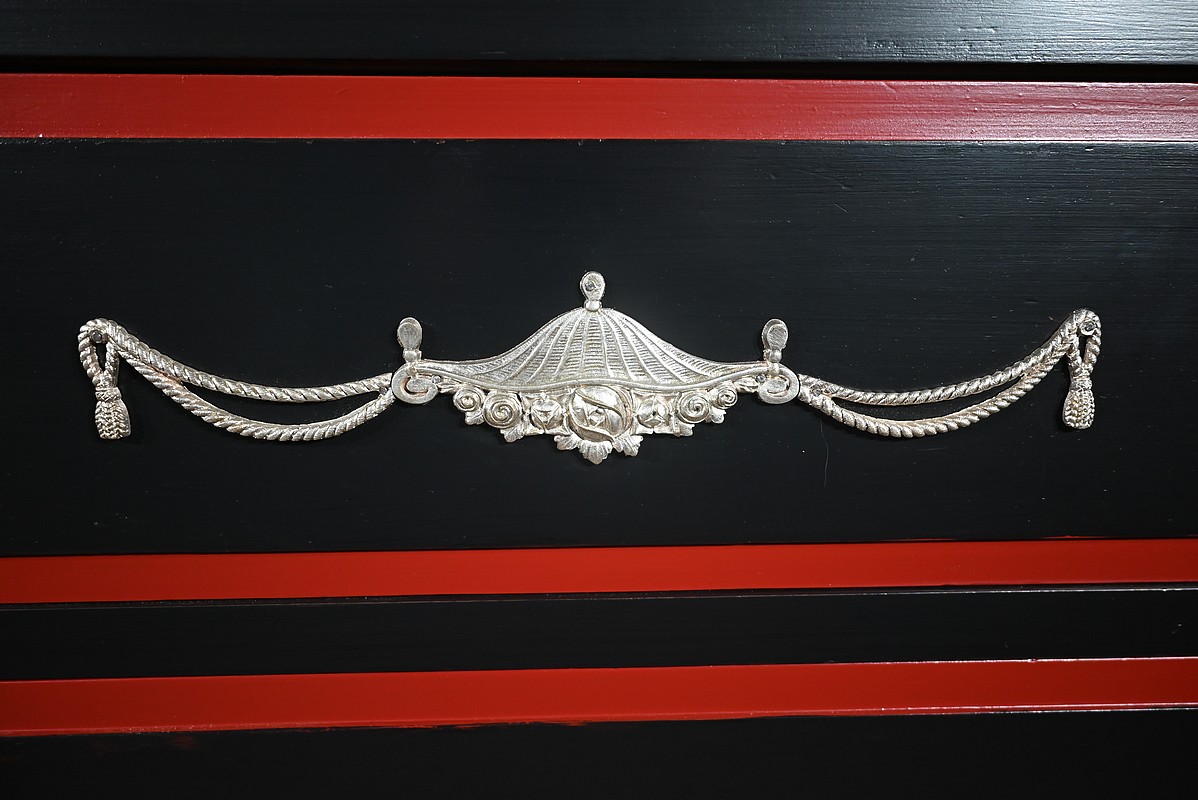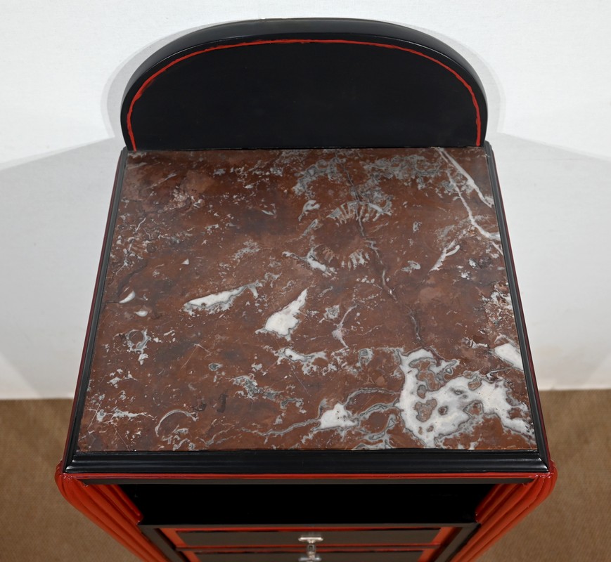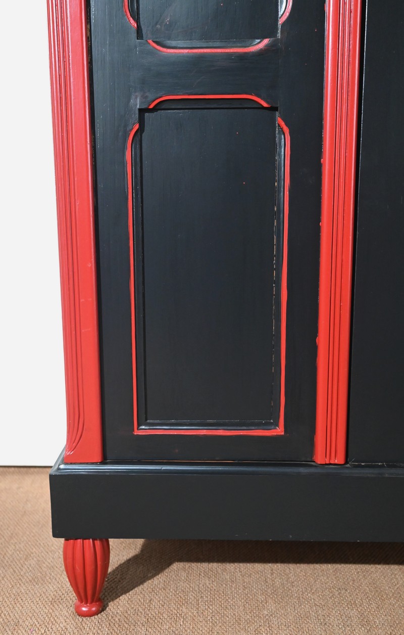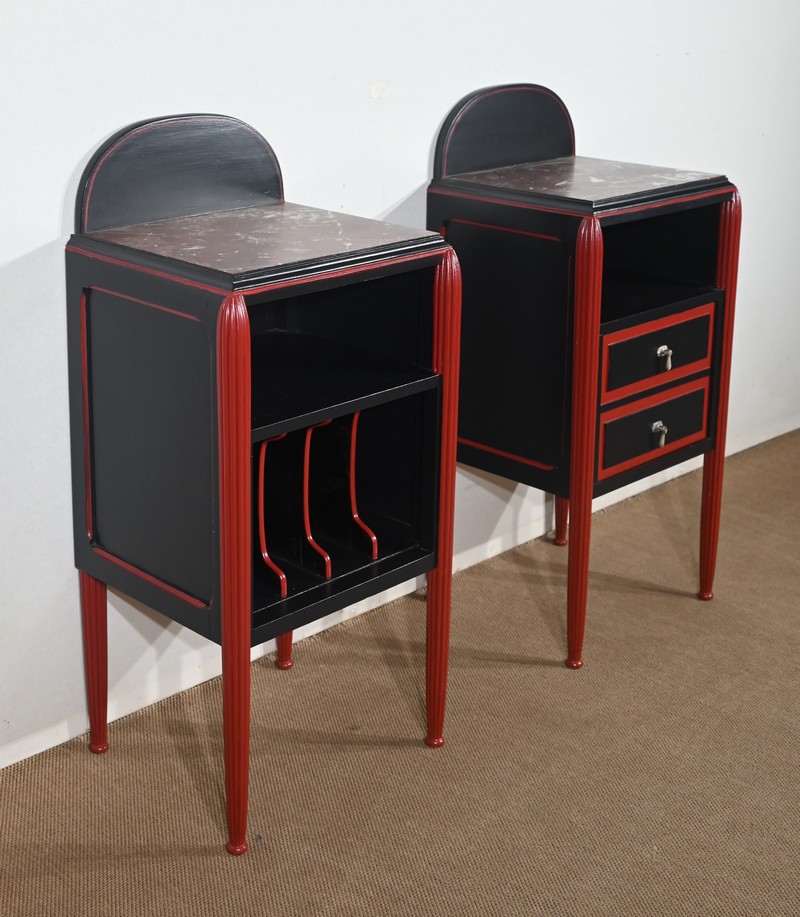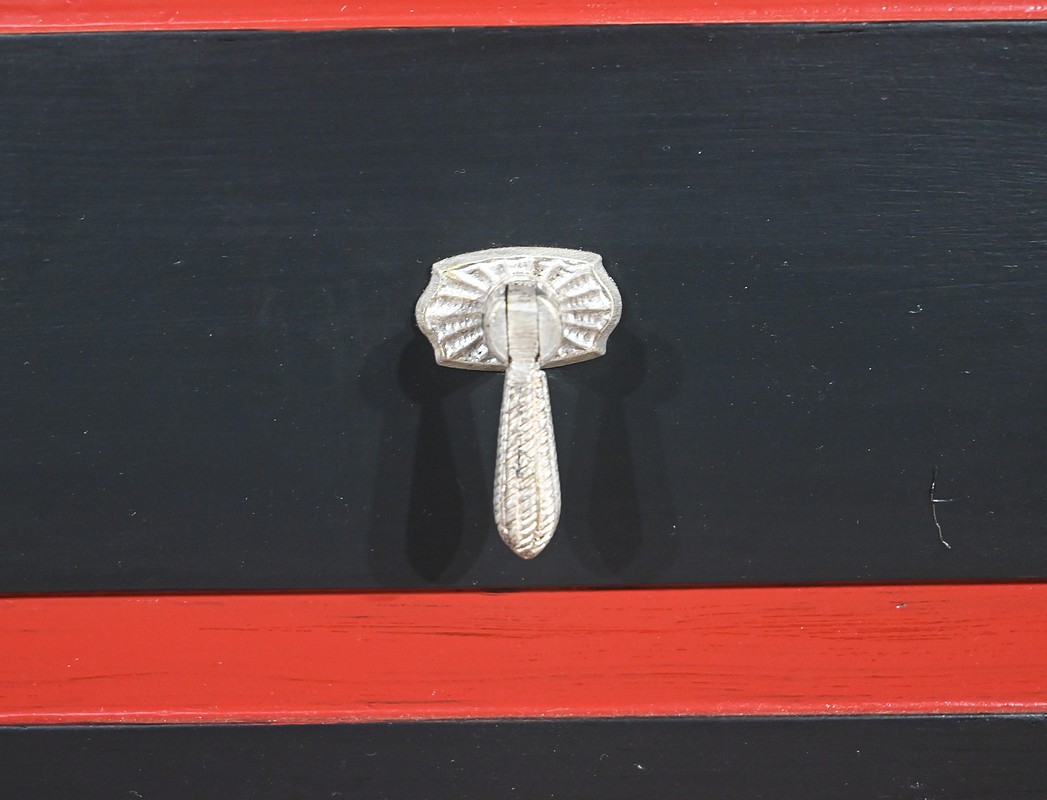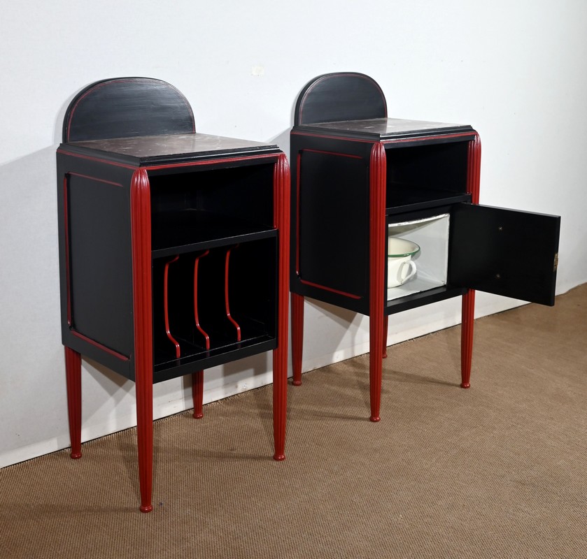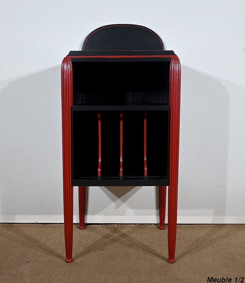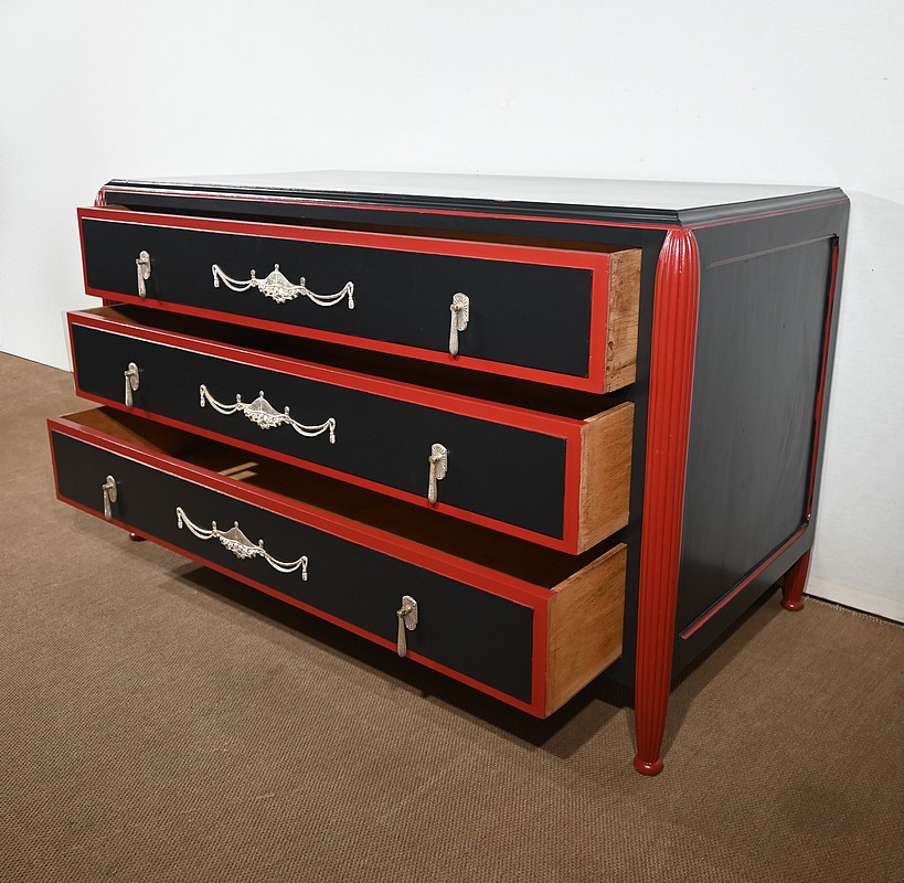 Rare ensemble de Chambre 5 pièces, en bois peint de couleurs noire et rouge sang de bœuf, d’époque Art Déco.