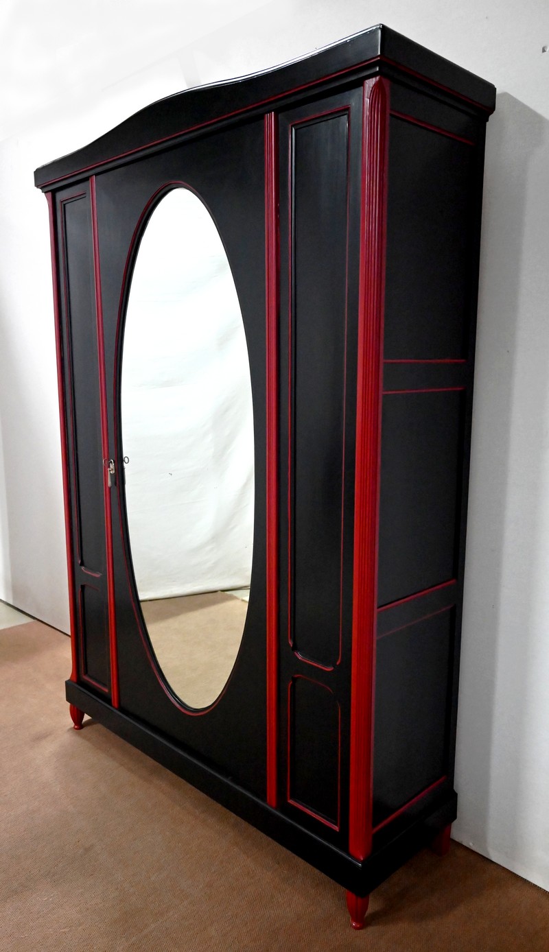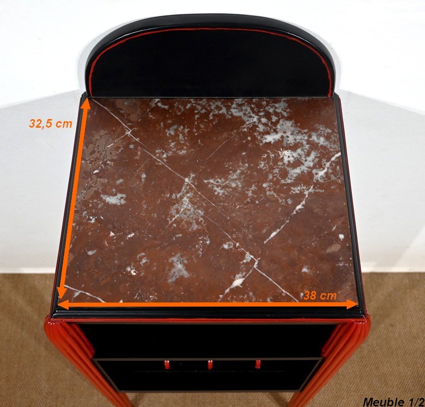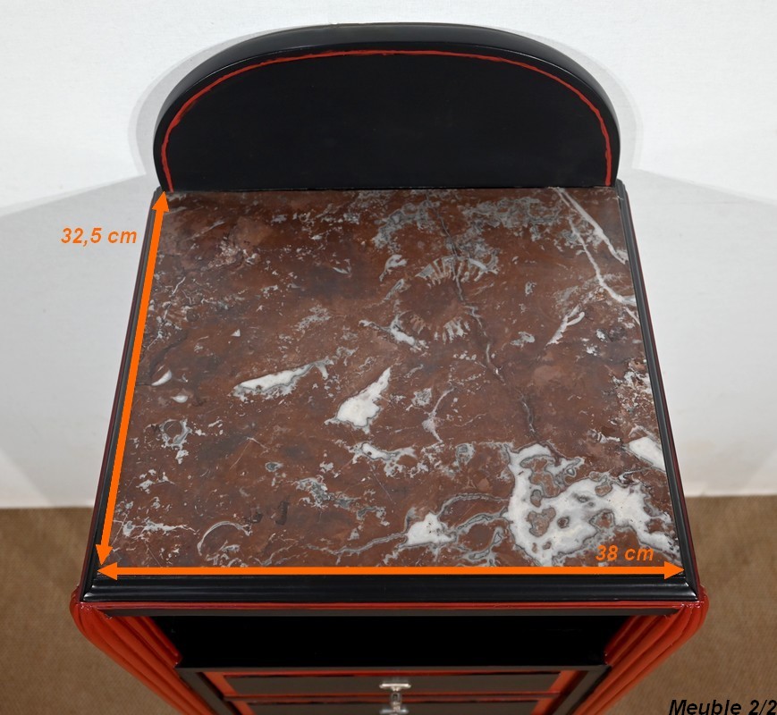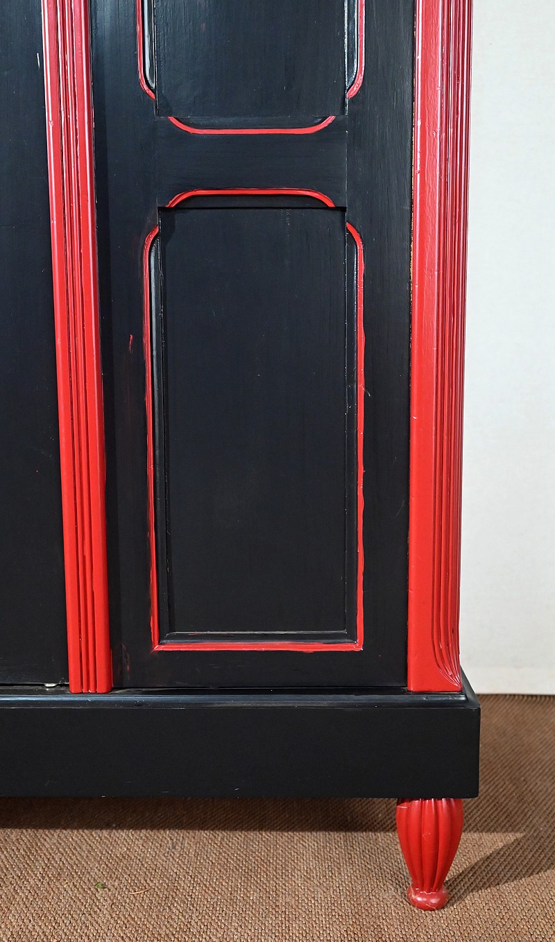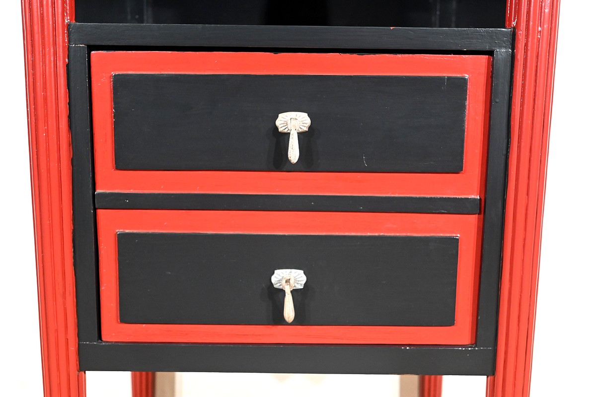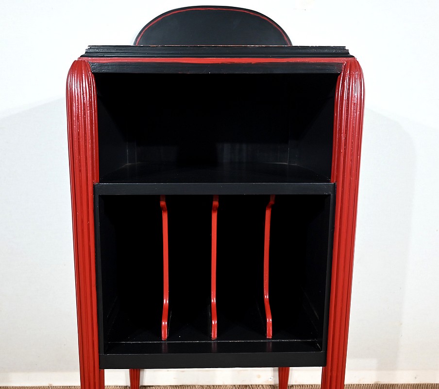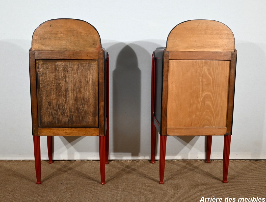 Rare ensemble de Chambre 5 pièces, en bois peint de couleurs noire et rouge sang de bœuf, d’époque Art Déco.