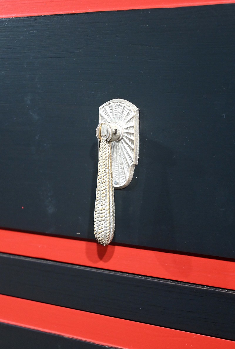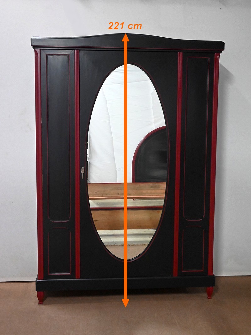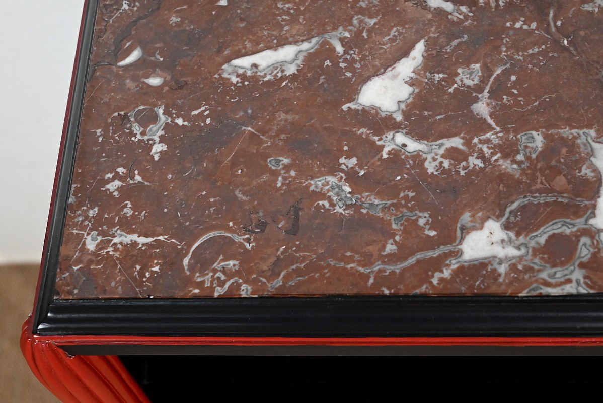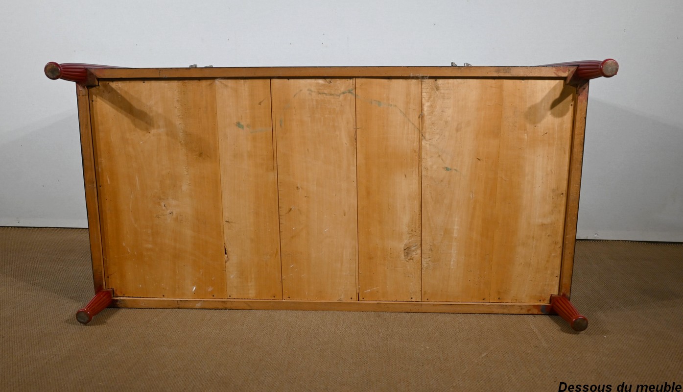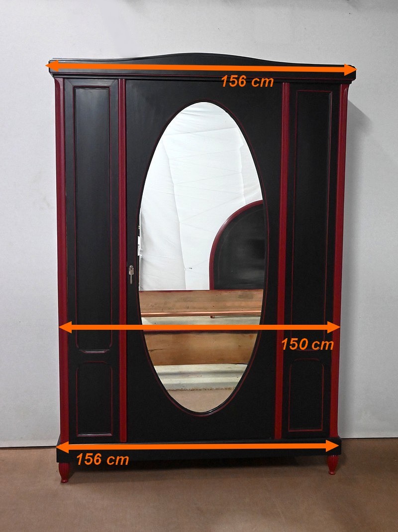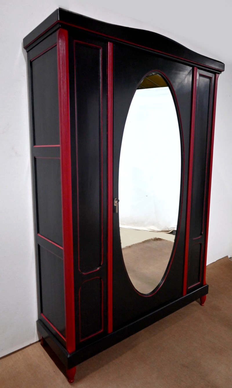 Rare ensemble de Chambre 5 pièces, en bois peint de couleurs noire et rouge sang de bœuf, d’époque Art Déco.