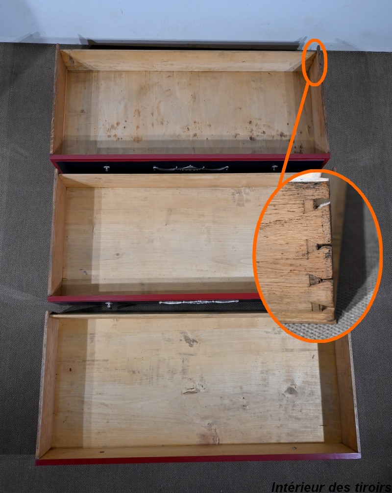 L’intérieur, le fond et l’arrière de ces tiroirs sont en peuplier et les côtés sont en chêne. Ils bénéficient d’un montage à queues-d’aronde.