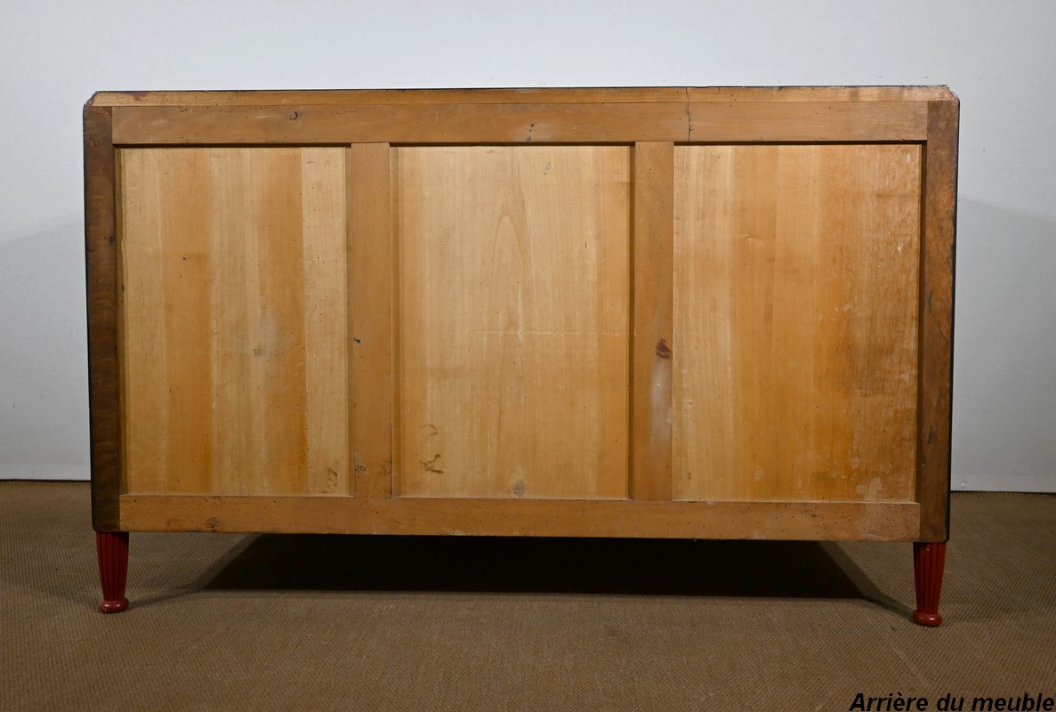 Le dessus de cette commode est mouluré en doucine.