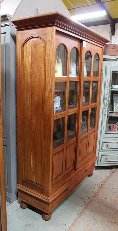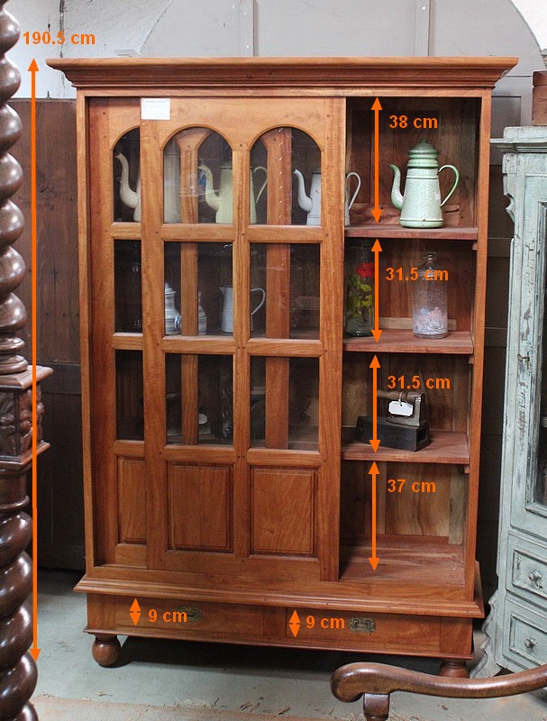 Elle repose sur 4 pieds ronds et son intérieur est garni de 3 étagères posées sur tasseaux fixes.