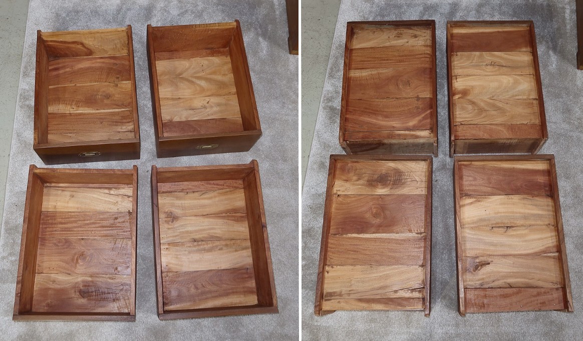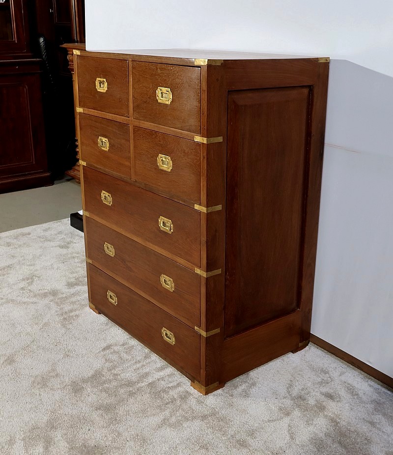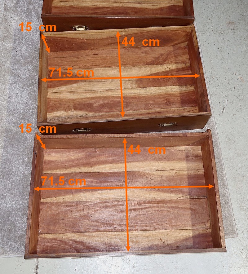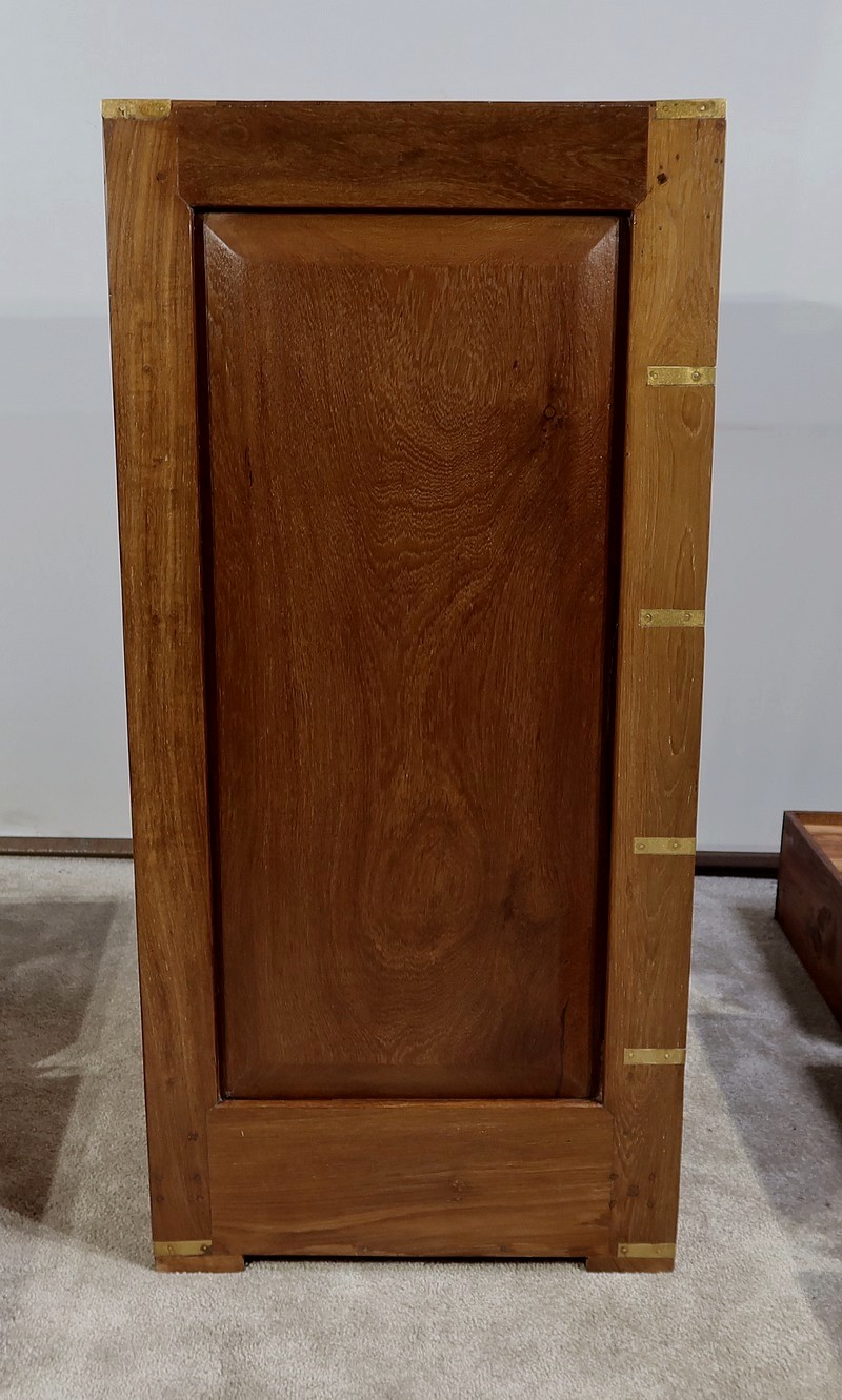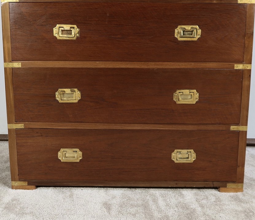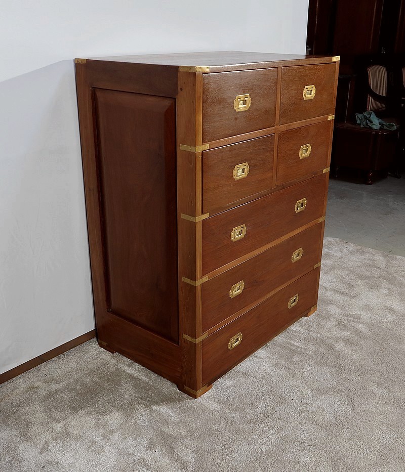 Belle reproduction d’une petite commode de Pondichéry en teck massif réalisée entièrement avec du bois de récupération issu des demeures coloniales indiennes. Cette essence ancienne de grande qualité est un bois qui ne travaille plus, assurant stabilité et solidité.