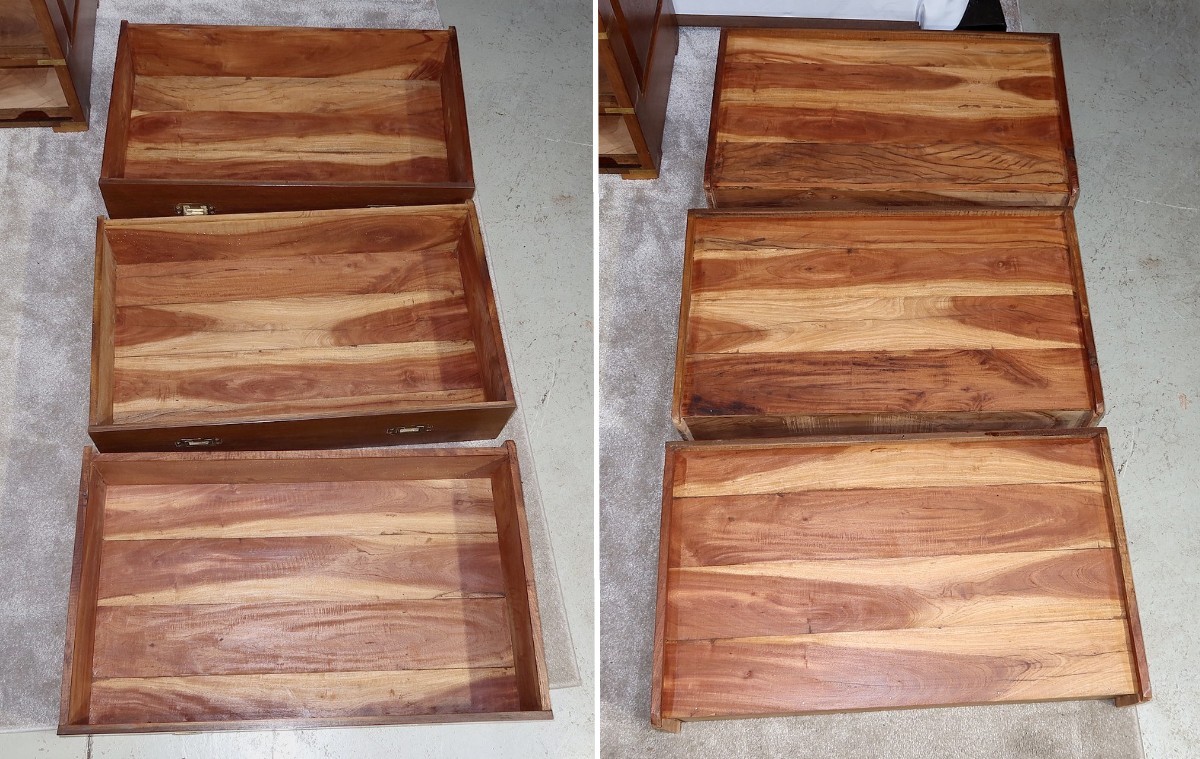 Depuis 50 ans, chaque pièce de mobilier est minutieusement restaurée avec passion dans notre atelier d’ébénisterie.