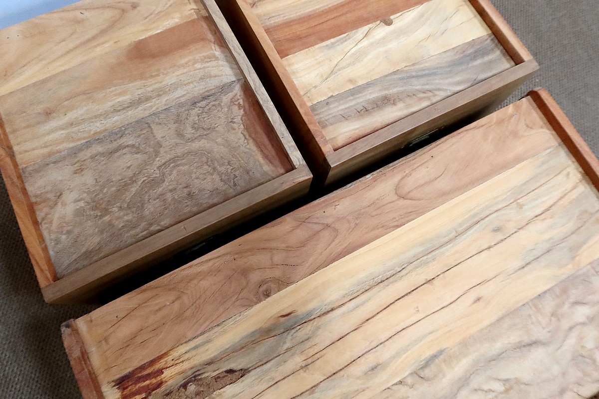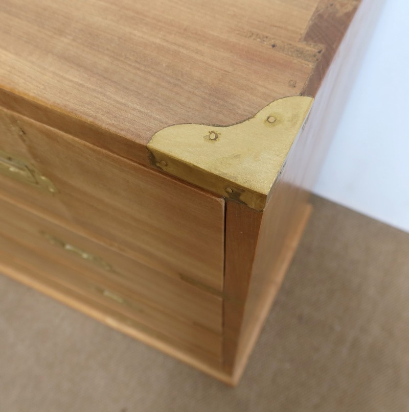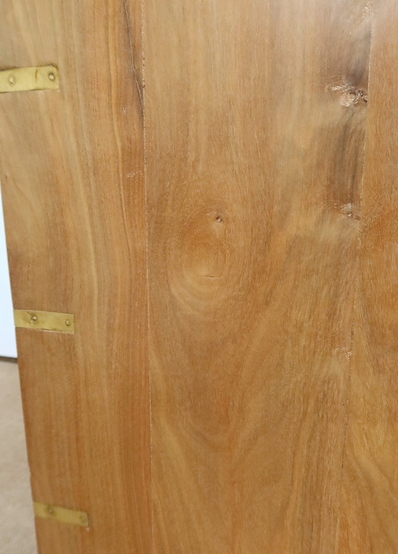Commode en bois massif blond, originaire du Sud de l’Inde, récupéré sur des demeures coloniales, ce qui en fait un matériau de grande qualité et qui ne travaille plus.