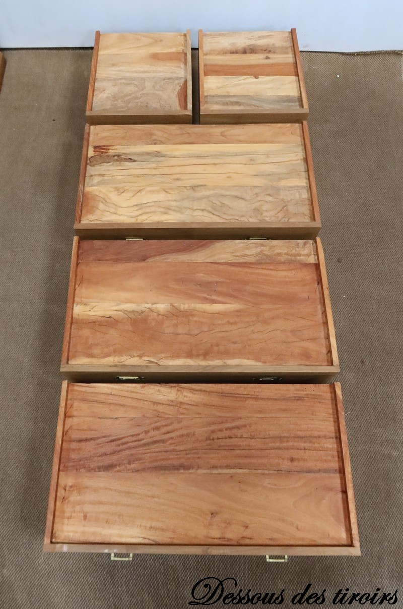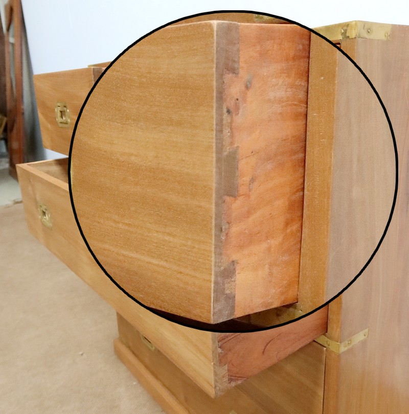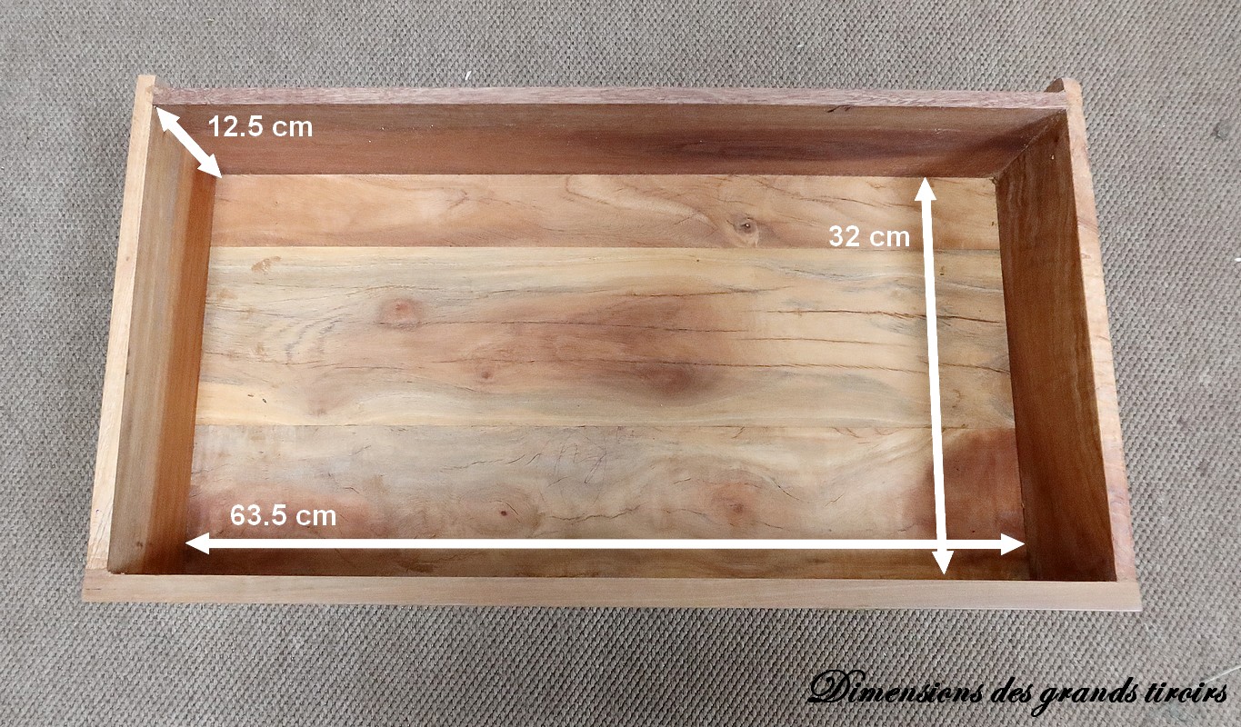 Ces tiroirs et la commode dans sa globalité sont montés à queues d’arondes.
