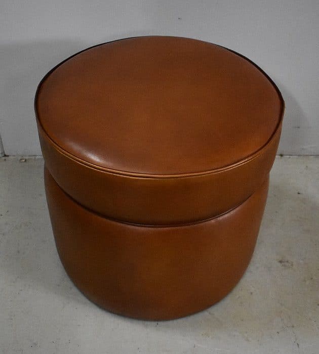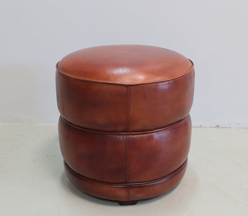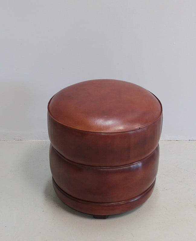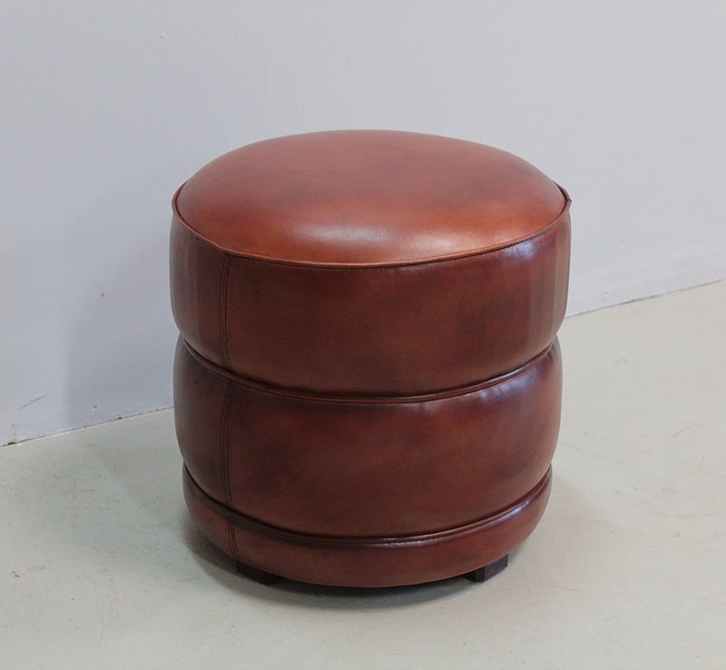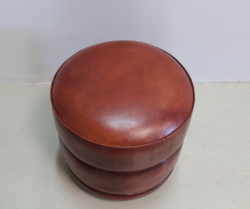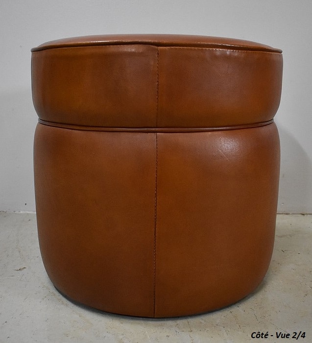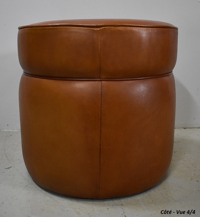 Pouf en cuir de mouton basane pleine fleur (épaisseur 1,4 mn à 1,6 mn).