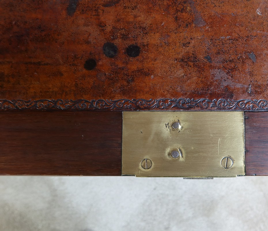 Celui-ci est habillé d’un cuir marron d’origine avec vignette frappée à froid et encadrement en bois de violette à coupe d’onglet.