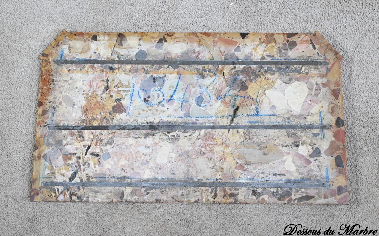 Ce mobilier d’exception est sommé d’un marbre d’Alep d’origine, à gorge et à léger ressaut, renforcé par des tringles.