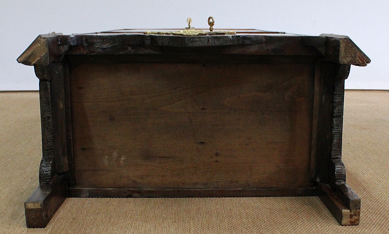 Nous retrouvons également une décoration de bronze sur la traverse basse et des entrées en bronze d’origine accompagnées de leurs clés rapportées. Le tout est en parfait état de fonctionnement.