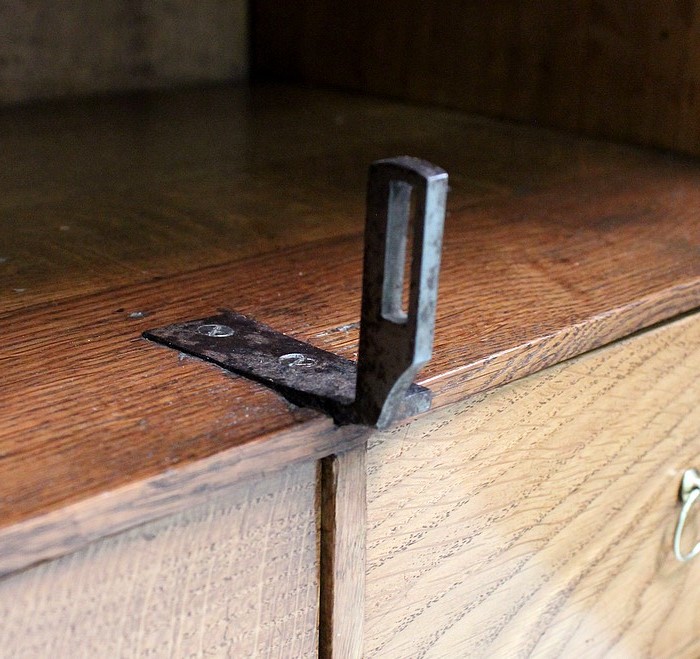 Chacun de ces trois ouvrants principaux se verrouillent et le meuble est fourni avec une clé adaptée à ses trois serrures.