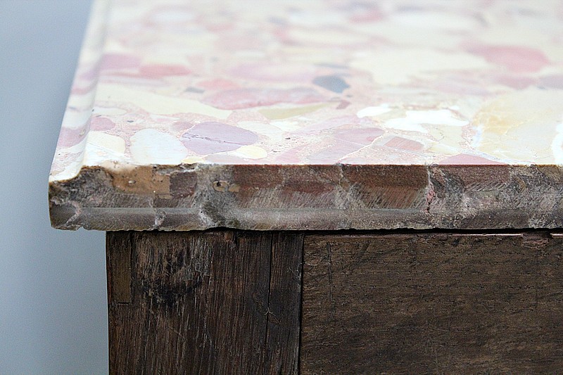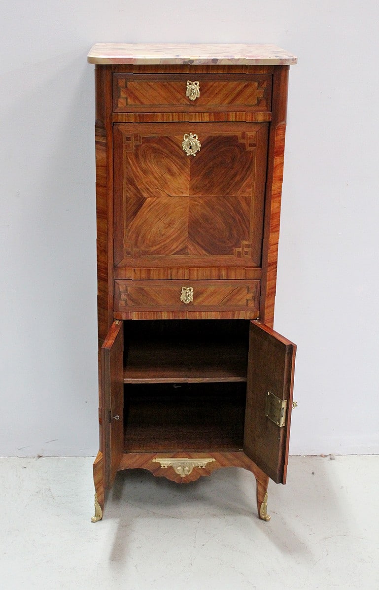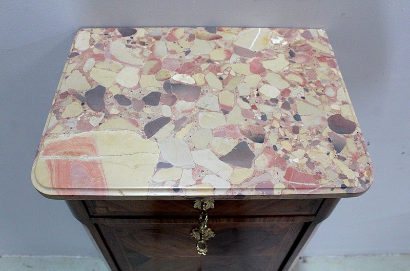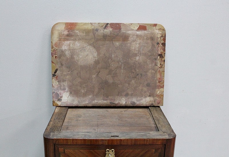 Son dessus en marbre Brèche d’Alep est découpé en arrondi aux angles avants et mouluré en gorge.